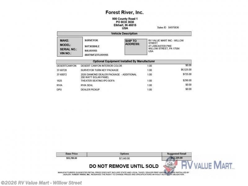 Request More Info on this 2026 Forest River Surveyor Legend 303BHLE Offered for sale by RV Value Mart - Willow Street