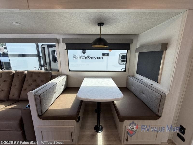 With any Surveyor Legend travel trailer by Forest River you will enjoy quality craftsmanship, convenient amenities, and at-home comforts. The Azdel composite walls provide a longer-lasting trailer, and the power tongue jack with a hitch light will get you back on the road in no-time. There are also Goodyear tires and a tire pressure monitoring system for hassle-free towing. Each model includes the Surveyor Legend Package that comes standard with oversized dinette storage access doors, front slam latch baggage doors, plus an automotive style tinted front windshield. You'll appreciate camping with a tankless water heater for endless hot showers, a 2" accessory hitch to bring bikes along, plus carpet-free interiors and a central vacuum system for easy clean up.