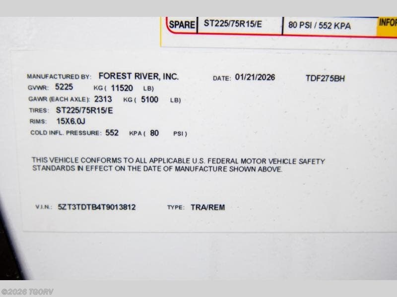 Request More Info on this 2026 Forest River TANDARA 275BH Offered for sale by TGORV