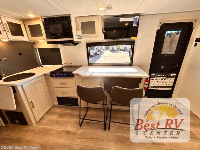 The campground will feel like home in this 2026 Forest River Un-Mapped 22RB. Be a part of the Forest River family with this 2026 Forest River Un-Mapped 22RB. If you’re looking for a couples RV, you’ve found it: this rig sleeps 2. The one slide allows for easy setup and just enough extra space inside. Go longer without filling up thanks to the 40 gallon fresh water tanks. Outside, you’ll find slideout.