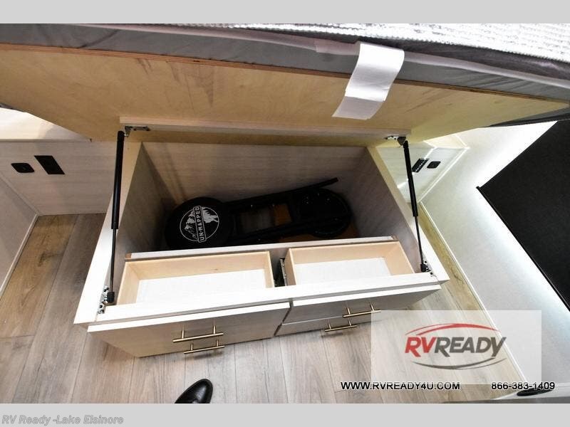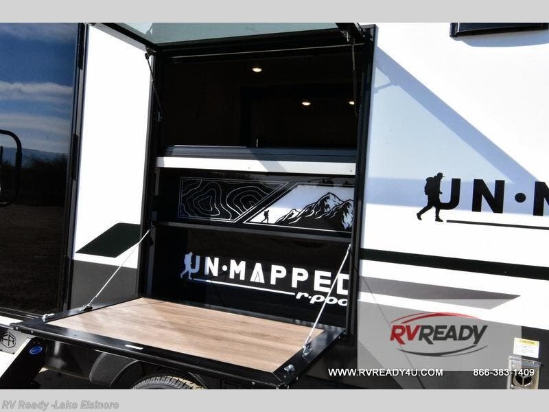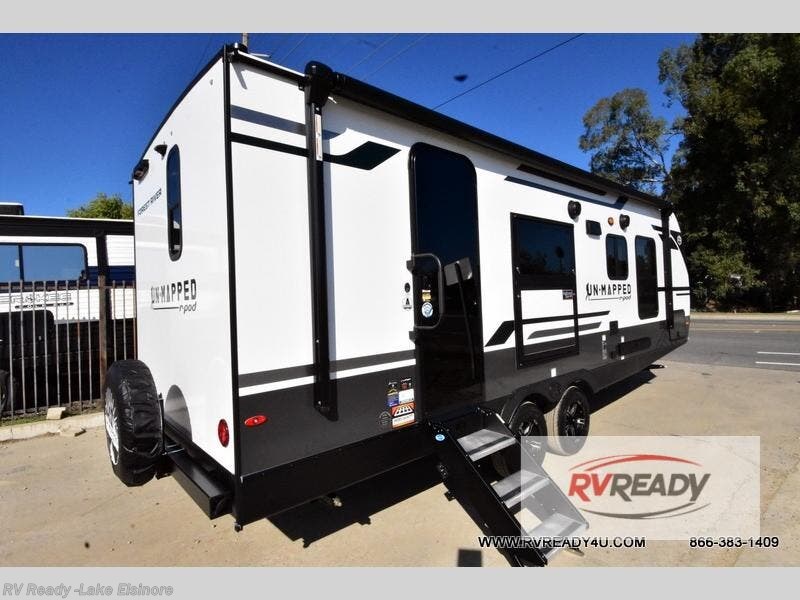The Forest River Un-Mapped travel trailers deliver an unparalleled travel experience thanks to their incredible features, starting with the aluminum-framed floor with block foam insulation that ensures exceptional structural integrity and thermal efficiency, along with the sealed underbelly with forced heat & radiant foil barrier that provides superior insulation and heat management, and the power tongue jack facilitates easy maneuvering and stabilization of the trailer. Plus, the 30 Amp charge controller with solar inverter prep is ready for integration with solar power systems, catering to eco-conscious travelers seeking off-grid capabilities. Inside, you will find seamless Surf-X kitchen countertops that offer a sleek, durable surface and are easy to maintain for busy travelers. Further, the blackout roller shades will add privacy and light control for restful nights and cozy daytime retreats.