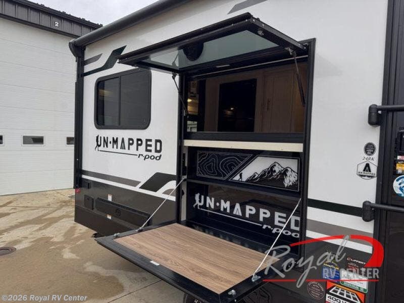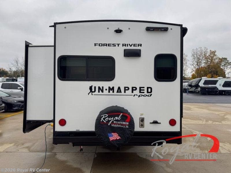 Visit Royal RV Center in Middlebury, Indiana, proudly serving Indiana, Michigan, Ohio, and beyond, to explore the Forest River Un-Mapped 24RK travel trailer and enjoy a modern, comfortable camping experience.