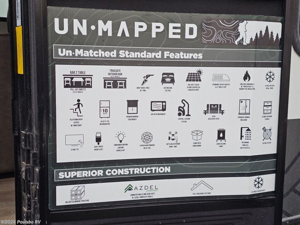 Introducing the 2026 Forest River Unmapped 26ML, a new travel trailer designed for the enthusiast who craves adventure and comfort. With a length of 28.11 feet, this spacious unit offers a perfect balance of livability and maneuverability, ideal for families or solo travelers seeking memorable experiences on the open road. Featuring a generous GVWR of 7168 pounds and a hitch weight of 720 pounds, this trailer is built to withstand your adventures while providing ample space to relax. The well-crafted interior maximizes comfort with a single slide-out, creating additional living space, and ensures that you can enjoy leisure activities just like at home. An awning adds an element of convenience, giving you a shaded space to relax outdoors and enjoy nature. Experience RVing like never before with the thoughtful design that includes ample storage for all your gear and essentials for those extended trips. As you embark on your travels, this new unit promises a comfortable place to unwind at the end of each day, making it a great choice for those who appreciate both quality and functionality. As a family-owned, award-winning local RV dealer with multiple locations in Sumner, Everett, Kent, and Mt. Vernon Washington, Poulsbo RV is here to help you find the perfect RV. Stock#: K6234, VIN: 4X4TUMB22TB035469.