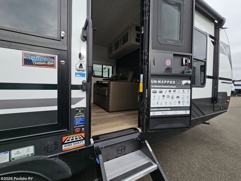 Introducing the remarkable 2026 Forest River Unmapped 26ML, a new travel trailer expertly designed for adventurous families who love exploring the great outdoors. Spanning 28.11 feet in length with a Gross Vehicle Weight Rating (GVWR) of 7168 pounds, this unit provides a spacious and inviting living area for unforgettable escapes. It is tailored for your outdoor adventures, featuring one slide-out that enhances your interior space, allowing for comfortable lounging and entertaining while on the road. Imagine gathering with family and friends to share stories and laughter in your home-away-from-home. The 26ML is equipped with a power awning that effortlessly extends to create a welcoming outdoor retreat, perfect for relaxation after an active day of exploration. Its lightweight design ensures that this travel trailer is easy to tow, giving you the freedom to access a variety of stunning destinations without the burden of complicated setups. This model boasts the latest features and technology, being in new condition to guarantee reliability on all your journeys. As you set off on memorable family adventures, the 2026 Forest River Unmapped 26ML promises both flexibility and comfort to accommodate all your travel needs. As a family-owned, award-winning local RV dealer with multiple locations in Sumner, Everett, Kent, and Mt. Vernon Washington, Poulsbo RV is here to help you find the perfect RV for every journey you embark upon. Stock#: E5990, VIN: 4X4TUMB20TB035468.