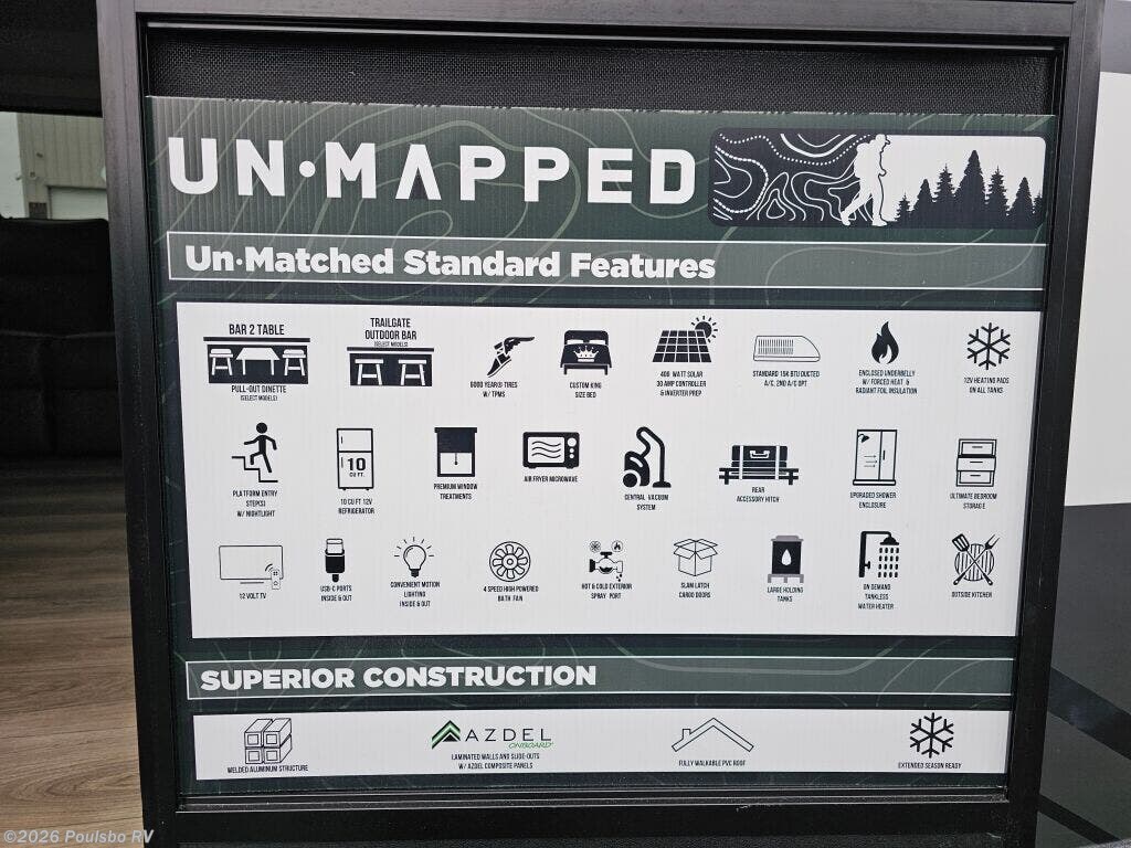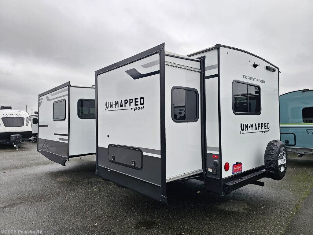 The 2026 Forest River Unmapped 25FK delivers a remarkable experience for those who appreciate spacious and flexible RV living. This new model spans 29 feet in length and is designed to comfortably accommodate two people, perfect for couples or solo adventurers seeking space without compromise. Featuring two slide outs, this RV enhances the living area to create an open, airy environment that makes relaxing or entertaining a pleasure. The thoughtful layout emphasizes comfort and convenience, ensuring that every journey feels like a retreat. Equipped with leveling jacks, you gain easy setup and stability at any campsite. The well-designed interior offers a versatile layout that maximizes sleeping accommodations and living space, making it easy to adjust to your lifestyle on the road. Spacious and well-appointed, it invites you to unwind after a day of exploring. Forest River?s commitment to quality is evident in this model's durable construction and practical design that combine to create a reliable travel companion. As you enjoy the comfort and convenience of this model, you will appreciate the combination of size, features, and versatility crafted to elevate your camping experience. Whether you are embarking on a weekend getaway or an extended trip, this RV provides a perfect balance of mobility and home-like comfort. As a family-owned, award-winning local RV dealer with multiple locations in Sumner, Everett, Kent, and Mt. Vernon Washington, Poulsbo RV here to help you find the perfect RV. Stock#: M3764, VIN: 4X4TUMA2XTB035592.