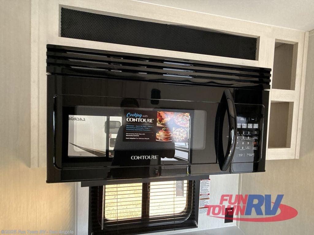 This double slide out toy hauler is ready for adventure when you are! Once your toys are unloaded using the ramp door, you can set up the flip-up sofas or set up the drop-down queen bed for guests to sleep on. You'll enjoy the front private bedroom all to yourselves that includes a king bed slide and a large dresser to keep your things organized. A three-burner range and 30" microwave will let you make meals each day, and the 10.7 cu. ft. 12V refrigerator will keep your food stored away.
