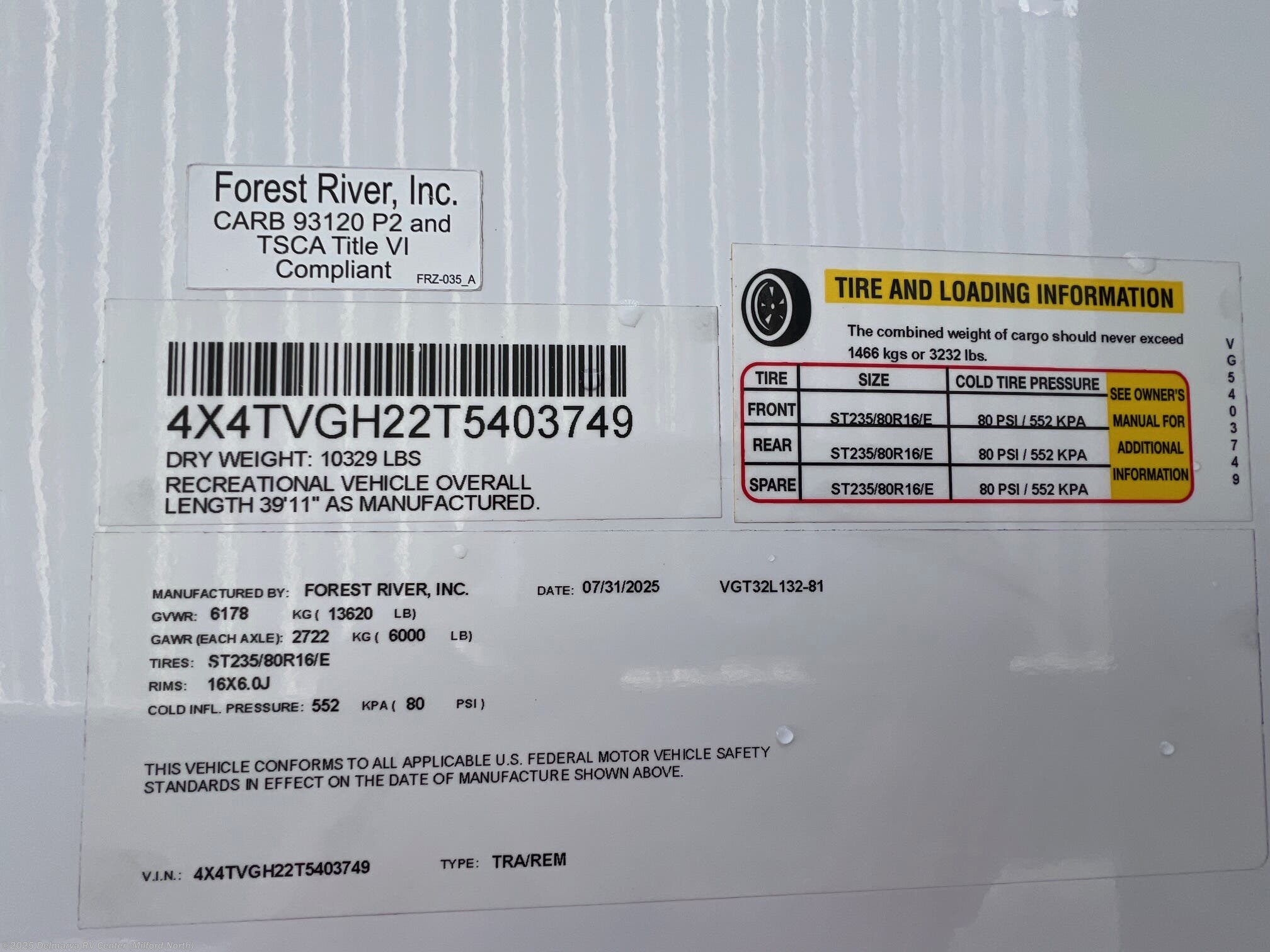 2026 Forest River Vengeance Rogue Armored 32L132 Specifications