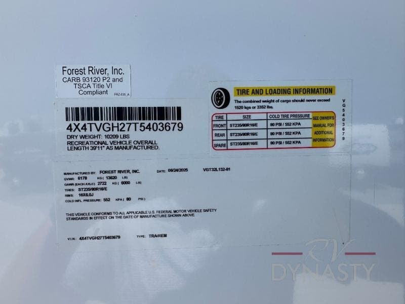 2026 Forest River Vengeance Rogue Armored 32L132 Specifications