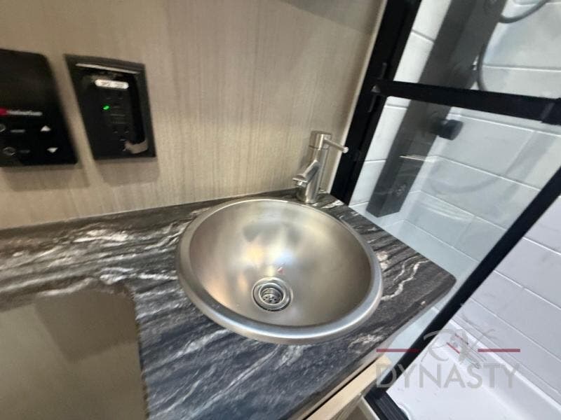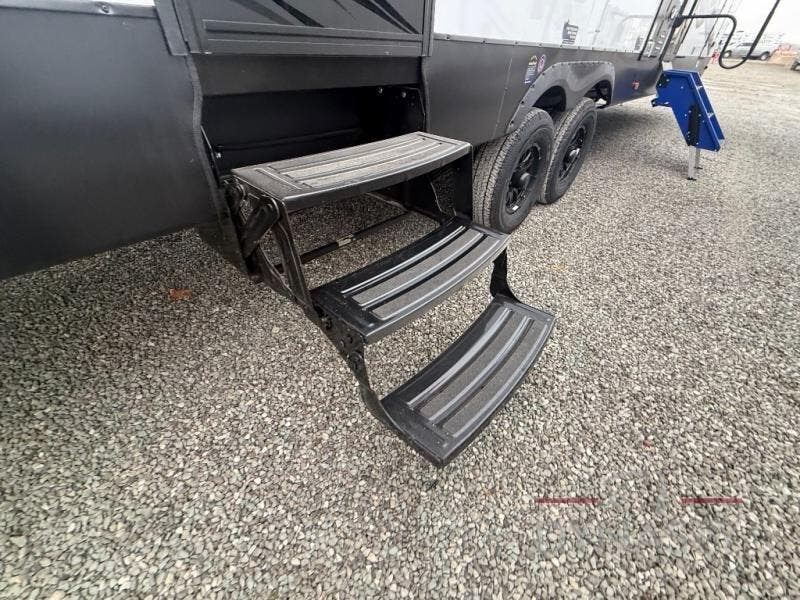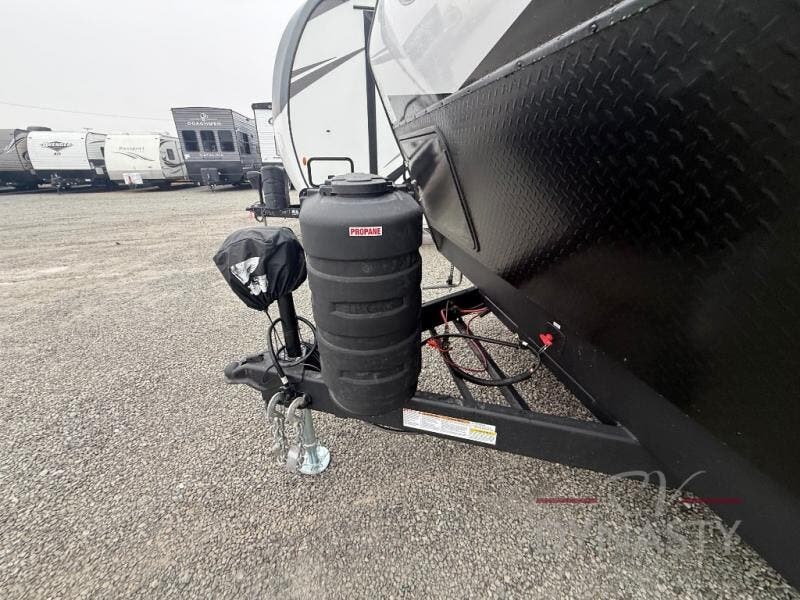 Every one of these Forest River Vengeance Rogue Armored travel trailer toy haulers come with the features you want most at an affordable price tag! The DuraPoxy gas/oil resistant floor has 5,000 lb. tie downs to ensure your toys will arrive safely without damaging the flooring, plus the 3,000 lb. rated ramp door makes it easy to load them. A 15,000 BTU A/C will keep you cool even on the hottest summer days, and there are heated enclosed holding tanks with 12V heat pads on every tank for added protection. Each model includes a fuel station with a digital readout, a ramp door patio system, a tire pressure monitoring system, and many more stand-out features. Inside, you'll find zebra shades in the living room, multiple USB charging stations, a multi-functional kitchen sink, glass shower doors, and many more comforts!