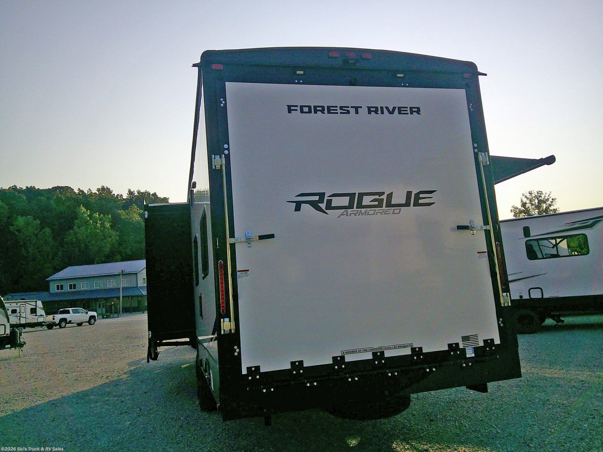 2026 Forest River Vengeance Rogue Armored 32L132 Travel Trailer Toy Hauler; 36 Foot; 2 Slides; Sleeps 6-8; Hitch Weight: 1640 Lbs.; Dry Weight: 10,525 Lbs.; 50 Amp; Power Tongue Jacks; Manual Stabilizer Jacks; 102 Gal. Fresh Water Cap.; 100 Gal. Black Water Cap.; 100 Gal. Gray Water Cap.; Two 30 Lbs. Propane Tanks; Two ACs: 15,000 / 15,000 BTUs; 35,000 BTU Furnace; 10.7 C.F. (12V) Refrigerator; On Demand Water Heater; Microwave; 3-Burner Stove/Oven; Three TV Jacks; 40 In. TV; Projector TV; Sound Bar; Speakers; Dimmable Lights; Pantry; Stainless Steel Sink; Solid Surface Countertops; Great Front Bedroom with King Bed; Queen Quick Set Bed; Flip-Up Sofas (2) and Table in Garage; One Full Bath with Shower; Half Bath in Garage Area; Porcelain Foot Flush Toilets; Large Garage Area: 151 Inches Overall / 8 Ft. x 8 Ft. Rear Then 6 Ft. x 4 Ft. ; 10 Tie Downs in Garage; Three-Season Wall; Large Ramp Door; 30 Gal. Fuel Station; 18 Foot Power Awning with LED Lights; Solar (200W) Package; Generator (6000W); Outside Kitchen with Grill and Ice Maker; Exterior Storage; Grab Handle; Leash Latch; Battery Disconnect; Black Tank Flush; Heated Tanks; Solar Reflective Windows; Zebra Shades; Goodyear Tires; Aluminum Wheels; Spare Tire; Tire Monitoring System; One Year Limited Warranty; Financing Available; Great Travel Trailer Toy Hauler for the Price: $55,995. Call Skis Truck & RV Sales at 765-344-1111 or visit us at for more information.