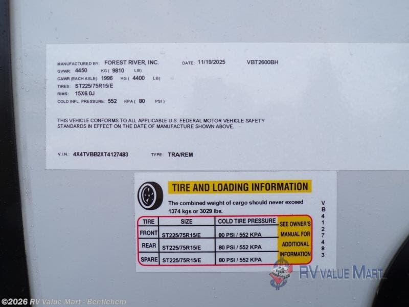 Request More Info on this 2026 Forest River Vibe 2600BH Offered for sale by RV Value Mart - Behtlehem