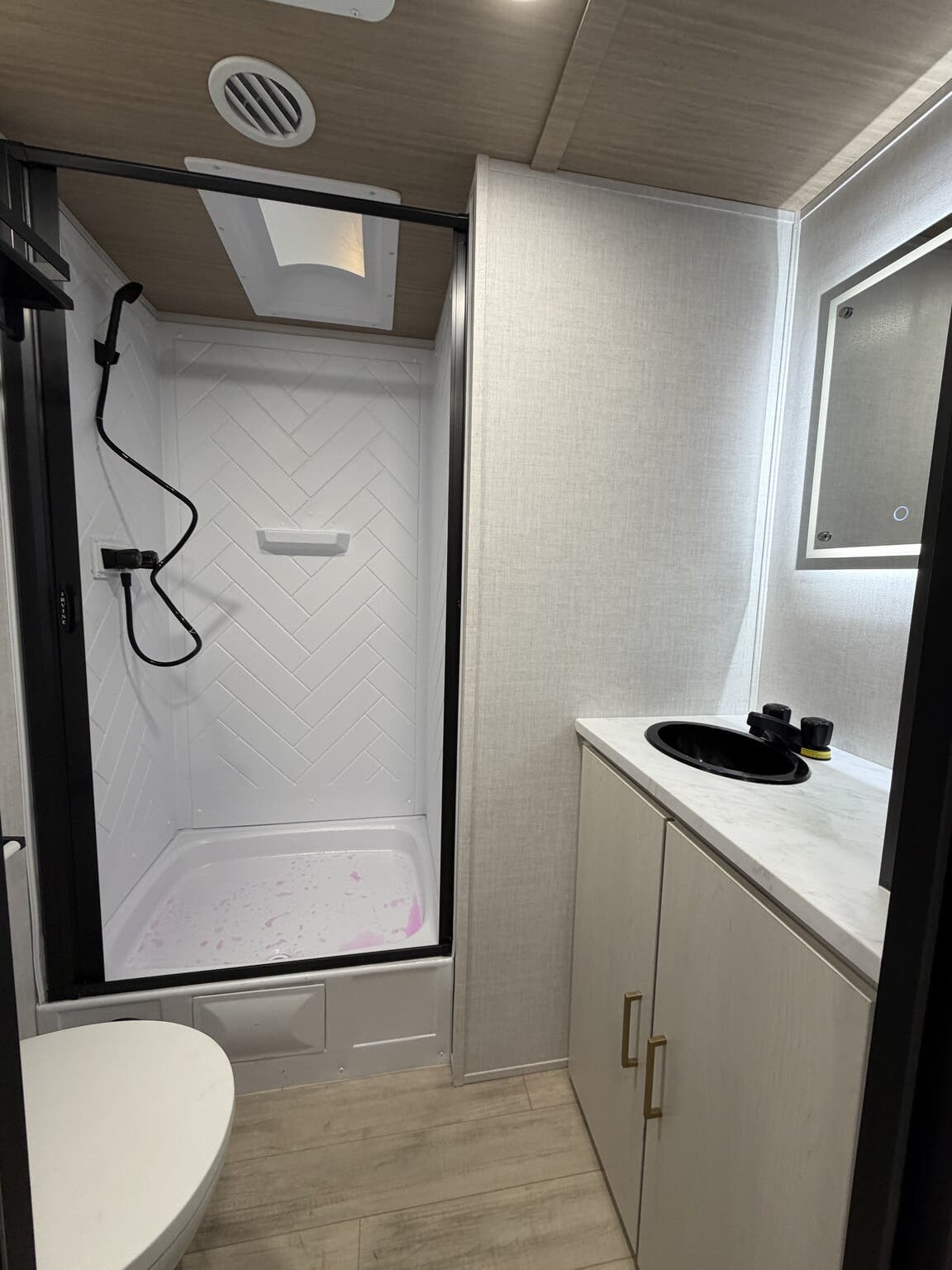 Aluminum Entrance Steps, Awning, Black Tank Flush, Detachable Power Cord, Enclosed Underbelly, External Shower, Front Overhead Storage, Pass Thru Storage, Power Awning, Power Hitch Jack, Power Stabilizer Jacks, PVC Roof, Screen Door, Second Roof A/C, Skylight, Slam Latch Baggage Doors, Slideout, Tinted Windows -