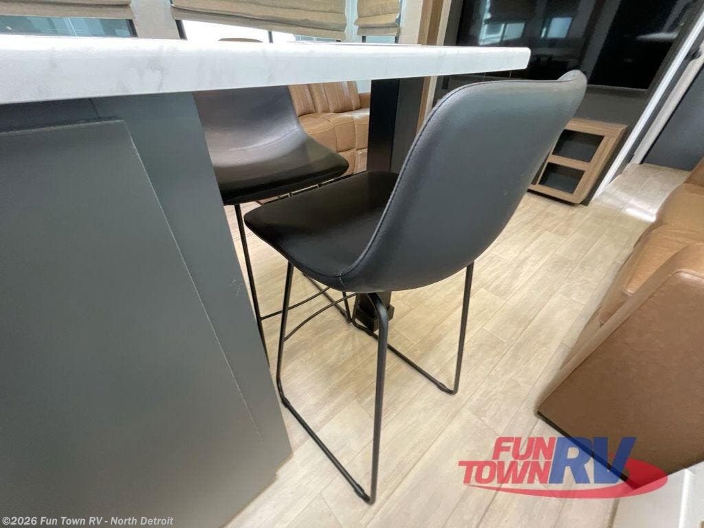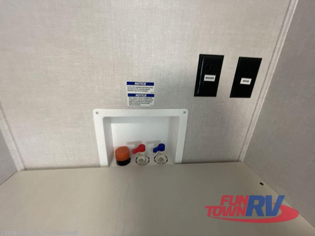 Whether you enjoy spending time outdoors or indoors, there is something for everyone in this travel trailer. The large pass-through storage can store your fishing poles, and the 20' electric awning with LED lights will create an outdoor living space. There is even an outdoor refrigerator with an outside storage cabinet and 32" TV! You will love all the interior space thanks to the dual opposing slides in the main living area, which will give the chef space to work around the kitchen island. Your crew can visit on the tri-fold sofa, theater seating and 5-person dinette while the fireplace is going, but you'll probably find the kids spending most of their time in the private bunkhouse! What more could you want in a travel trailer?!