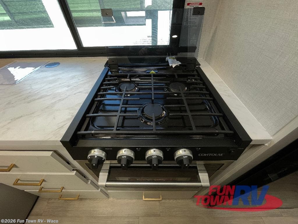 Whether you enjoy spending time outdoors or indoors, there is something for everyone in this travel trailer. The large pass-through storage can store your fishing poles, and the 20' electric awning with LED lights will create an outdoor living space. There is even an outdoor refrigerator with an outside storage cabinet and 32" TV! You will love all the interior space thanks to the dual opposing slides in the main living area, which will give the chef space to work around the kitchen island. Your crew can visit on the tri-fold sofa, theater seating and 5-person dinette while the fireplace is going, but you'll probably find the kids spending most of their time in the private bunkhouse! What more could you want in a travel trailer?!
