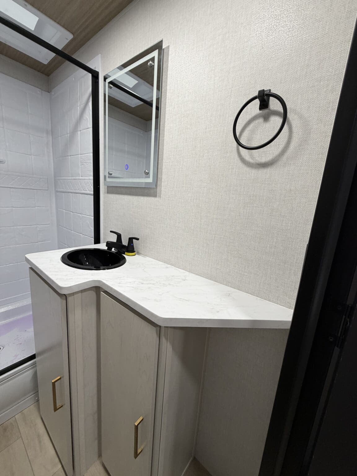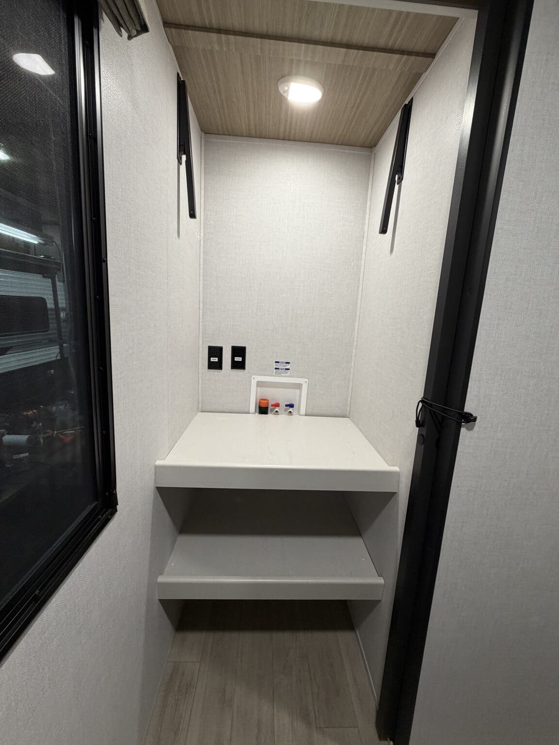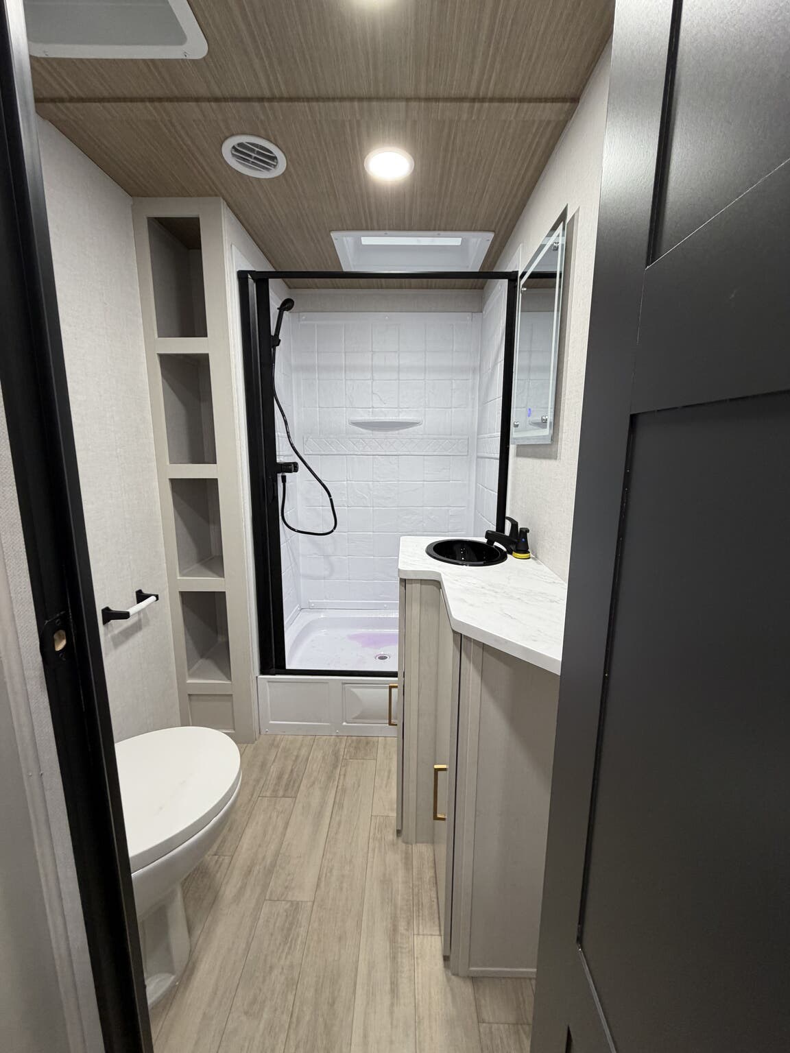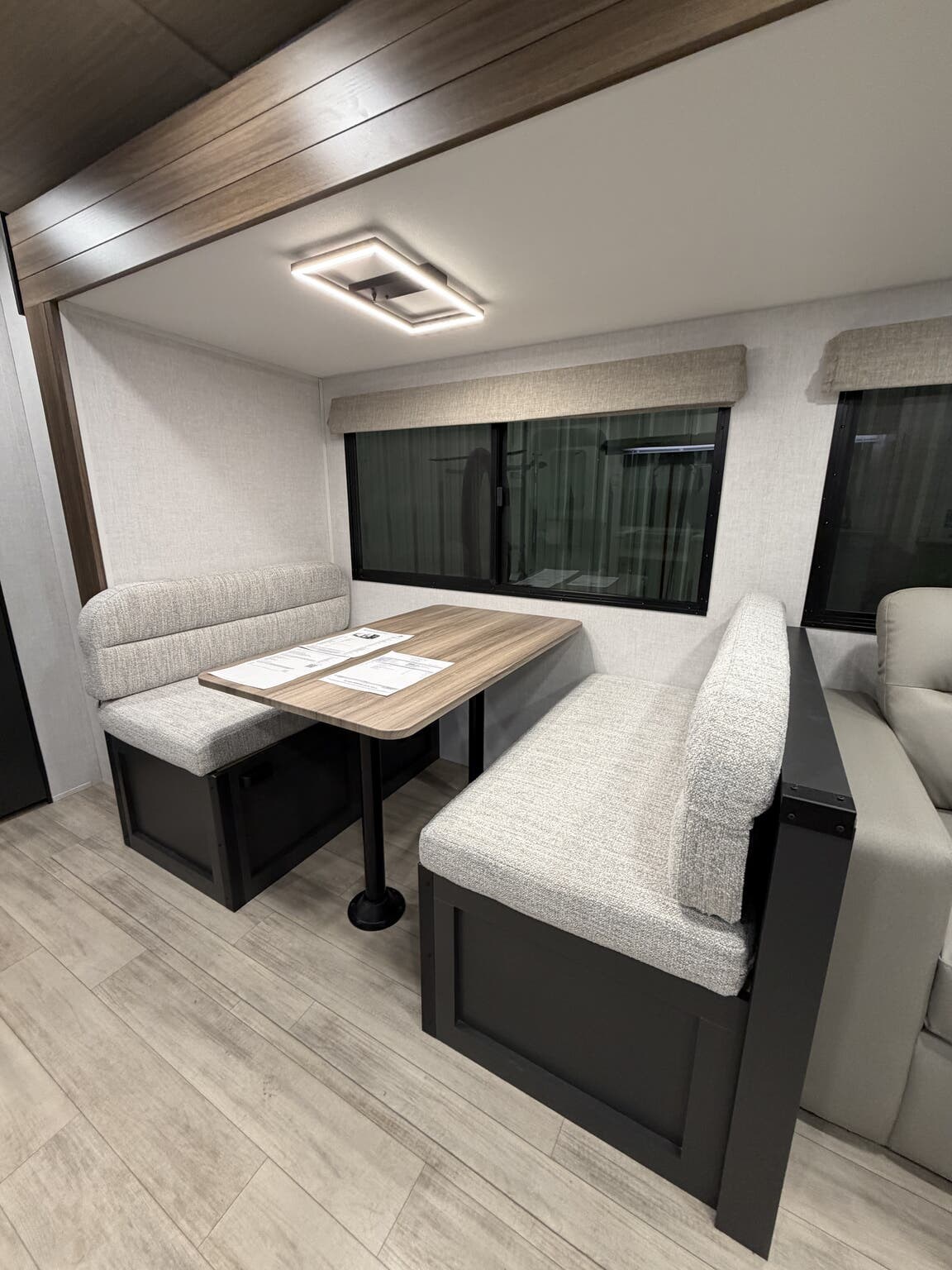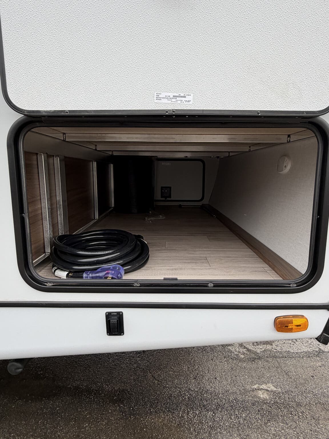 This 2026 Forest River Vibe Extreme Lite 2600BH is the perfect rig for your adventures and explorations. This 2026 Forest River Vibe Extreme Lite 2600BH welcomes you into the Forest River family! This rig sleeps 9, so it makes the perfect family RV. Setup is a breeze thanks to one roomy slide. The fridge, stove make the perfect combo for eating well on the road. Spend time together as a family in the living area with the TV. With the dinette, you’ve got the perfect place for family meal times. Traveling couples love this rig thanks to the sofa bed. Keep a comfortable temperature inside your rig with the heating option. Go longer without filling up thanks to the 38 gallon fresh water tanks. The exterior features make camping a breeze, such as aluminum entrance steps, black tank flush, detachable power cord, enclosed underbelly, external shower, fiberglass sidewalls, pass thru storage, power awning, power hitch jack, power stabilizer jacks, pvc roof, screen door, second roof a/c, skylight, slam latch baggage doors, slideout, spare tire kit and tinted windows. Wash up from your adventures with the outside shower. Never run out of room for your belongings thanks to the pass-through storage underneath.