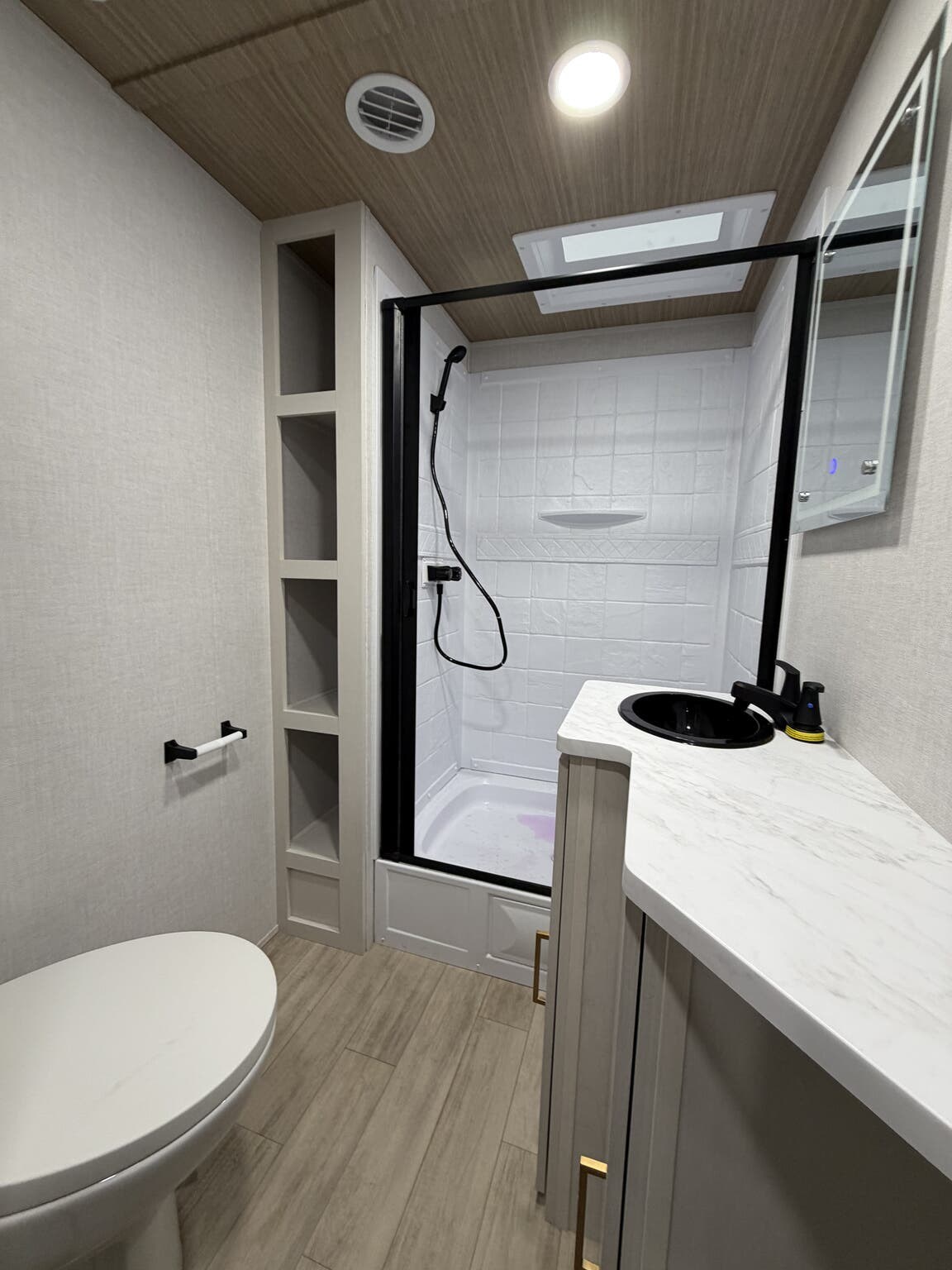 Booth Dinette, Bunk Beds, Dinette, Dinette Bed, Fireplace, King Size Bed, Pantry, Shower, Sofa Bed, Toilet -