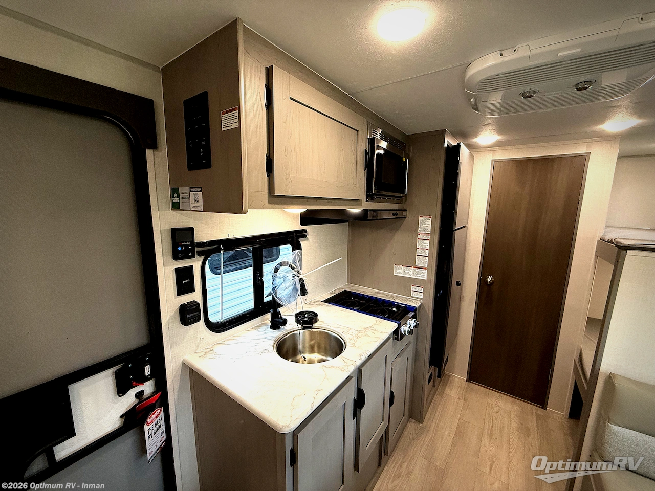 This is the perfect travel trailer for a family of four or five since it includes bunk beds for the kids, and a queen bed up front as well as a booth dinette that can be converted to sleep one more. There is an induction cooktop to cook meals on, and a sink to easily clean up each day. You can dine at the booth dinette or take your plate outdoors to sit under the 10' power awning with LED lighting. This model also includes a 24" x 36" shower to get cleaned up each day. Get an early start on family vacations with this travel trailer in tow!