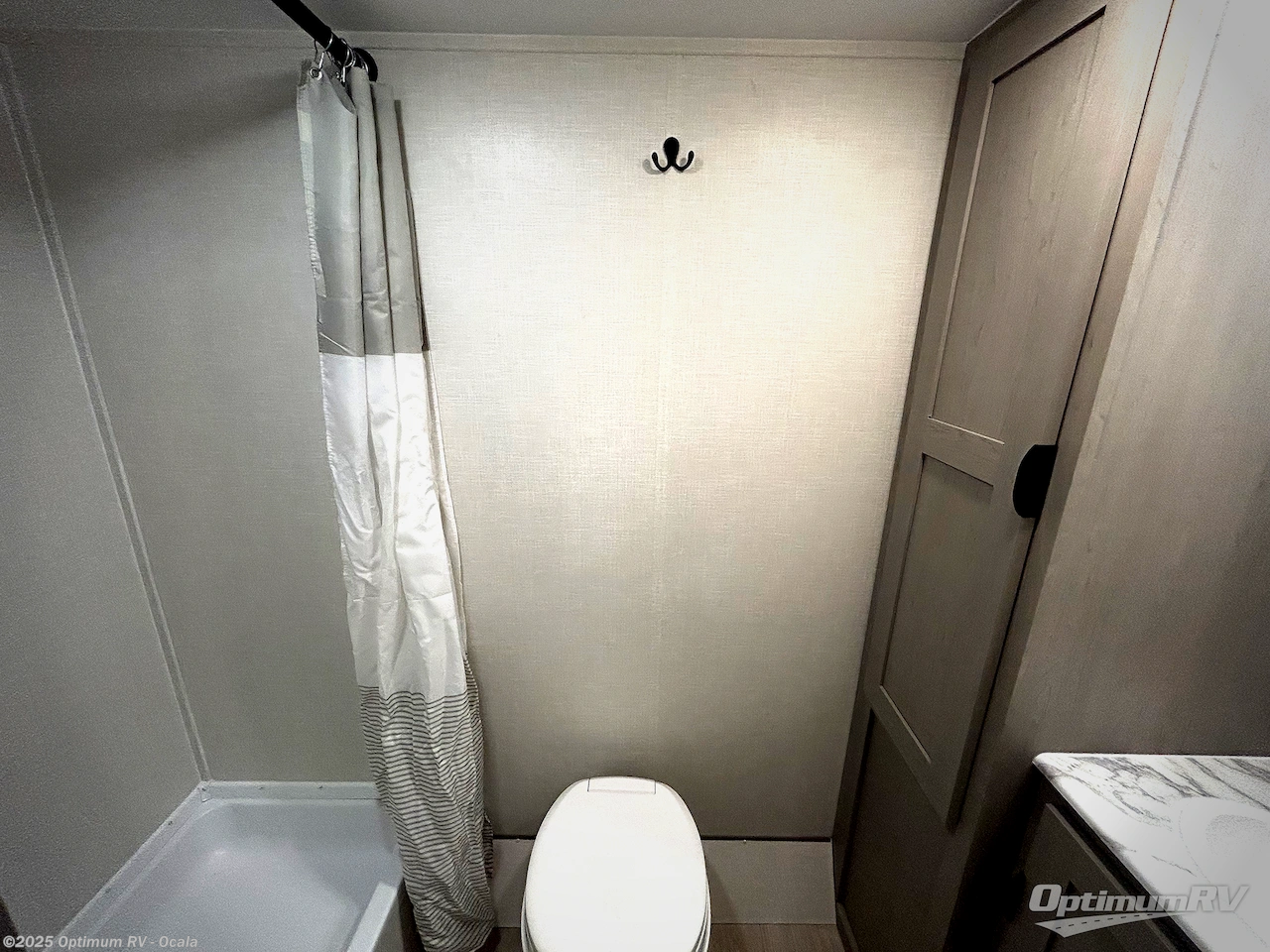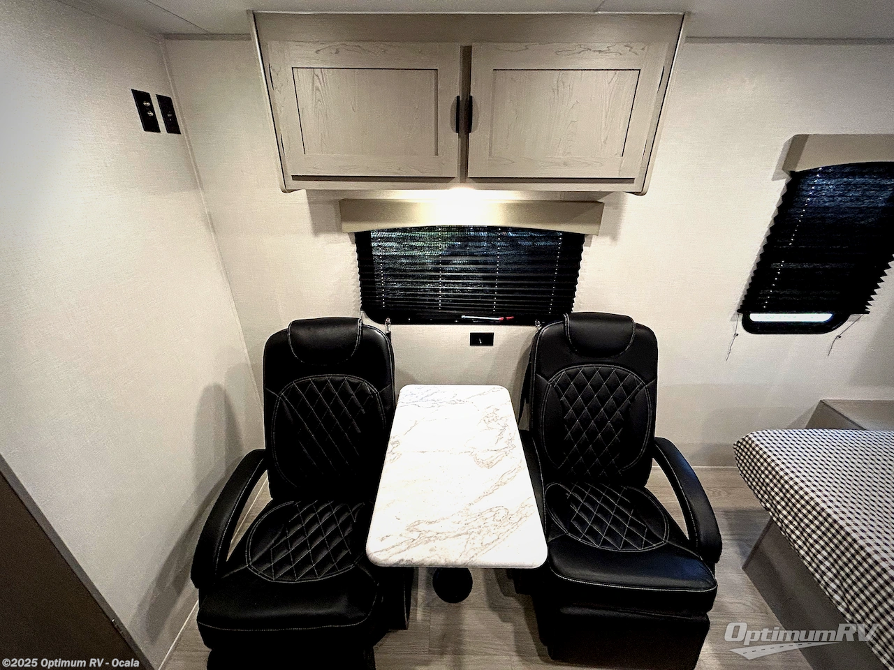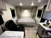 Take this versatile couple's travel trailer to your favorite destinations! It features a front jackknife sofa "Murphy Bed" for versatile seating and sleeping space. There are also two wardrobes with a private shelf on each end and an overhead shelf above for your things. There is additional seating with two recliner chairs including a table between opposite the kitchen area. This space also features overhead storage. The full rear bath offers a 24" x 36" shower, a sink with medicine cabinet and linen storage as well. You can easily cook simple camp meals using the two burner cooktop or the microwave. On the exterior, a front pass-through storage compartment is available for all of your outdoor gear!