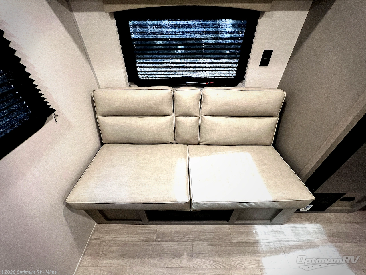 Time spent in this travel trailer will be time well spent! There is a front bedroom with a 60" x 74" queen bed, dual wardrobes, and an overhead shelf on either side of the bed to keep your belongings close by. A three burner cooktop and microwave will let you make meals each day, and a 10 cu. ft. 12V refrigerator will help keep food stocked. This unit also includes a booth dinette in the back where you can dine together, along with a jack knife sofa on the other side for a place to relax! Both of these places can serve as extra sleeping space if needed.