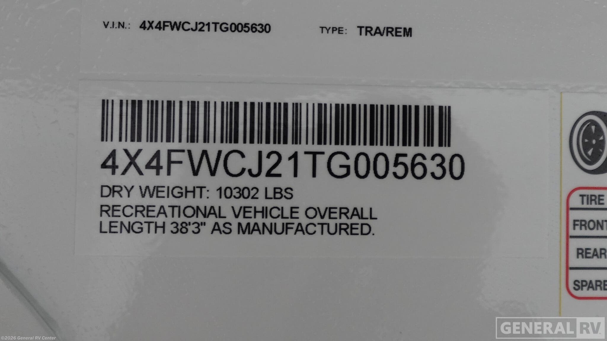 - VIN4X4FWCJ21TG005630