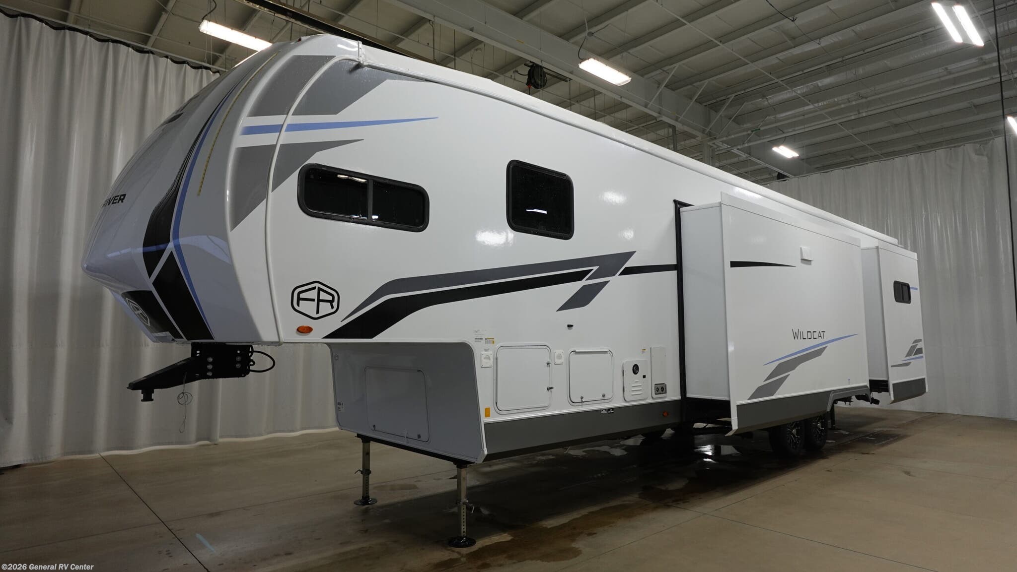 **2026 Forest River Wildcat 36FUN Highlights:** - Spacious Triple-Slide Living Area - Front Master Bedroom with King-Size Bed - Dual Full Bathrooms - Large Kitchen with Island & Pantry - Entertainment Center with Fireplace & TV Hit the road or settle in for extended stays with the 2026 Forest River Wildcat 36FUN! This roomy fifth-wheel features three expansive slide-outs that open up the interior, giving you a true residential feel on wheels. The front master bedroom offers a king-size bed for a restful night’s sleep, while dual full bathrooms ensure comfort and convenience for families or guests. The well-appointed kitchen boasts a center island, ample counter space, and generous pantry storage, making meal prep and storage a breeze no matter how long you’re away from home. Spend cozy evenings in the living area around the entertainment center with fireplace and HDTV, perfect for winding down after a day of exploring. With thoughtful design and plenty of room to stretch out, the Wildcat 36FUN blends comfort, convenience, and outdoor adventure seamlessly — ideal for families, couples, or anyone who loves to travel in style and comfort.