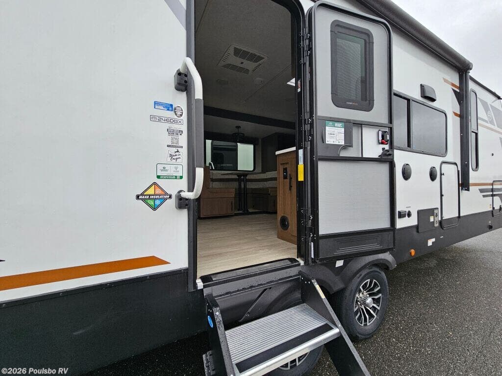 Discover the 2026 Forest River Wildcat Maxx 246DBX, a new travel trailer expertly crafted to provide spacious, versatile living for families or groups of up to eight people. Measuring just over 30 feet in length and with a dry weight of 6,673 pounds, this model offers a balanced combination of roomy comfort and manageable towing. Designed with one slide out, the interior living area expands to create an open and welcoming environment where everyone can relax and unwind after a day of adventure. The inclusion of a bunkhouse is a standout feature, perfect for families seeking private sleeping quarters that offer both flexibility and space for children or guests alike. This trailer is equipped with a large awning that extends your living space outdoors, allowing you to comfortably enjoy your time outside whether relaxing, dining, or entertaining. For added convenience and stability, leveling jacks secure the trailer in place at any campsite, enhancing comfort and safety during your stay. Inside, the thoughtful design includes features that make life on the road easier, creating a cozy and functional home away from home. From weekend trips to longer excursions, this Wildcat Maxx model supports your RV lifestyle with style and practicality. As a family-owned, award-winning local RV dealer with multiple locations in Sumner, Everett, Kent, and Mt. Vernon Washington, Poulsbo RV is ready to help you select the ideal RV for your needs. Stock#: M3744, VIN: 4X4TWCA22TT019868.