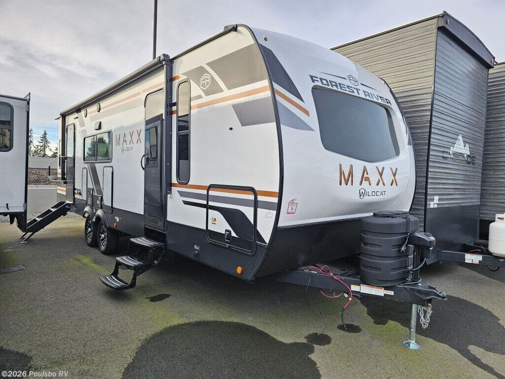 Discover the perfect blend of comfort and adventure with the 2026 Forest River Wildcat 261RLX, a new travel trailer crafted for those who value spacious, convenient living on the road. Measuring nearly 32 feet long, this model delivers a thoughtfully designed interior that maximizes every inch of space with a single slide out that expands the main living area. Sleeping up to five people, it offers flexible accommodations ideal for family trips or excursions with friends. Inside, you will find comfortable seating and smart storage solutions that keep your essentials organized and accessible throughout your journey. The well-appointed layout includes modern amenities that enhance your camping experience, making it easy to relax and unwind after a day of exploring. Equipped with leveling jacks, the Wildcat 261RLX is simple to set up and stabilize at your campsite, ensuring a steady and secure base wherever you go. With a dry weight of 6785 pounds and a hitch weight of 865 pounds, this travel trailer balances manageable towing with a spacious, livable interior. The Wildcat design focuses on delivering a practical yet stylish space that invites connection and comfort during your travels. Whether you are setting out for a weekend escape or a longer trip, this model offers the space and features needed to enjoy the great outdoors with ease and confidence. As a family-owned, award-winning local RV dealer with multiple locations in Sumner, Everett, Kent, and Mt. Vernon Washington, Poulsbo RV here to help you find the perfect RV. Stock#: K6222, VIN: 4X4TWCB28TT019890.