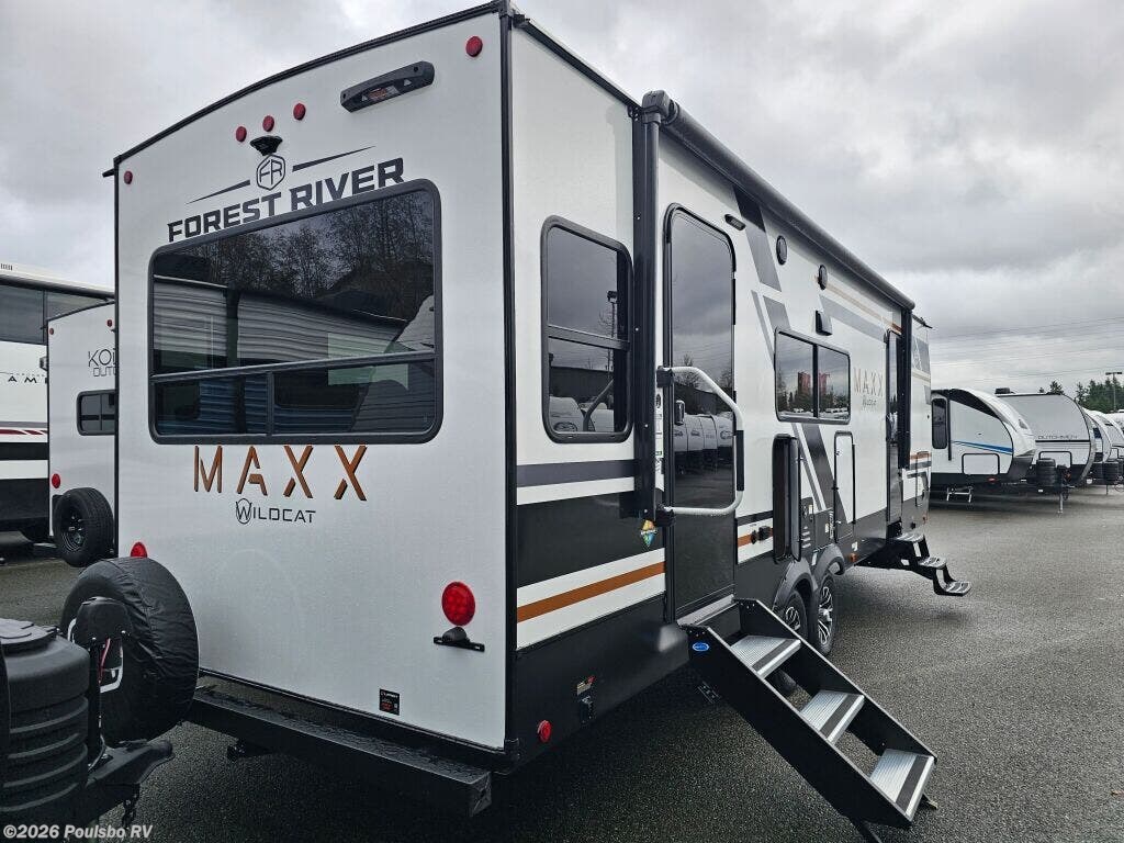 The 2026 Forest River Wildcat 261RLX offers a stunning combination of spaciousness and thoughtful design, crafted to enhance every aspect of your recreational travel. This new model stretches to 31.8 feet long, providing plenty of room to create lasting memories with family or friends. With sleeping accommodations for up to five people, it is ideal for small groups seeking comfort and versatility on the road. The interior is designed to provide a generous living space that includes a single slide-out, expanding your day area for enhanced relaxation and movement throughout the space. The Wildcat 261RLX features reliable leveling jacks that ensure a stable and secure setup, allowing you to enjoy your time without worrying about uneven terrain. Its dry weight of 6785 pounds and a hitch weight of 865 pounds make it well-suited for a variety of tow vehicles, simplifying your travel and setup process. Convenience features are thoughtfully integrated to make your stay more enjoyable, whether you are cooking meals, entertaining, or relaxing after a day of exploration. This model is well suited for those who value both comfort and functionality, opening doors to unforgettable outdoor experiences. The Forest River Wildcat is an excellent choice for those ready to embrace the RV lifestyle with ease and confidence. As a family-owned, award-winning local RV dealer with multiple locations in Sumner, Everett, Kent, and Mt. Vernon Washington, Poulsbo RV here to help you find the perfect RV. Stock#: E5981, VIN: 4X4TWCB21TT019889.