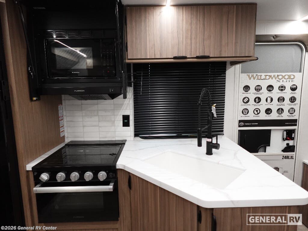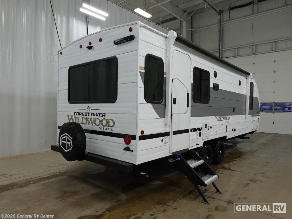 Experience the perfect blend of comfort and style with the 2026 Forest River Wildwood X-Lite 24RLXL. This travel trailer is designed for those who crave adventure without sacrificing the comforts of home. With a spacious layout that sleeps up to six, including a luxurious king bed and two convertible sleeping areas, it's perfect for family getaways or a cozy retreat for two. The rear living area, featuring a panoramic window and entertainment center with a fireplace, creates a welcoming space to relax and enjoy the view. The center kitchen is equipped with a full-size electric refrigerator and a three-burner cooktop, making meal prep a breeze. The thoughtful design continues with a center bath, complete with a walk-in shower and curtain for added convenience. Up front, the versatile king bed and ample storage, including a walk-in closet, ensure you have all the space you need for a comfortable stay. Outside, the 16-foot powered retractable awning provides a perfect spot for outdoor relaxation, while the pass-thru storage keeps your gear organized and accessible. With a dry weight of 5063 lbs and a GVWR of 7550 lbs, this trailer is both sturdy and easy to tow. Whether you're setting out for a weekend getaway or an extended road trip, the Wildwood X-Lite 24RLXL is your ideal companion. For more details or to explore this model further, visit your nearest General RV Dealership.