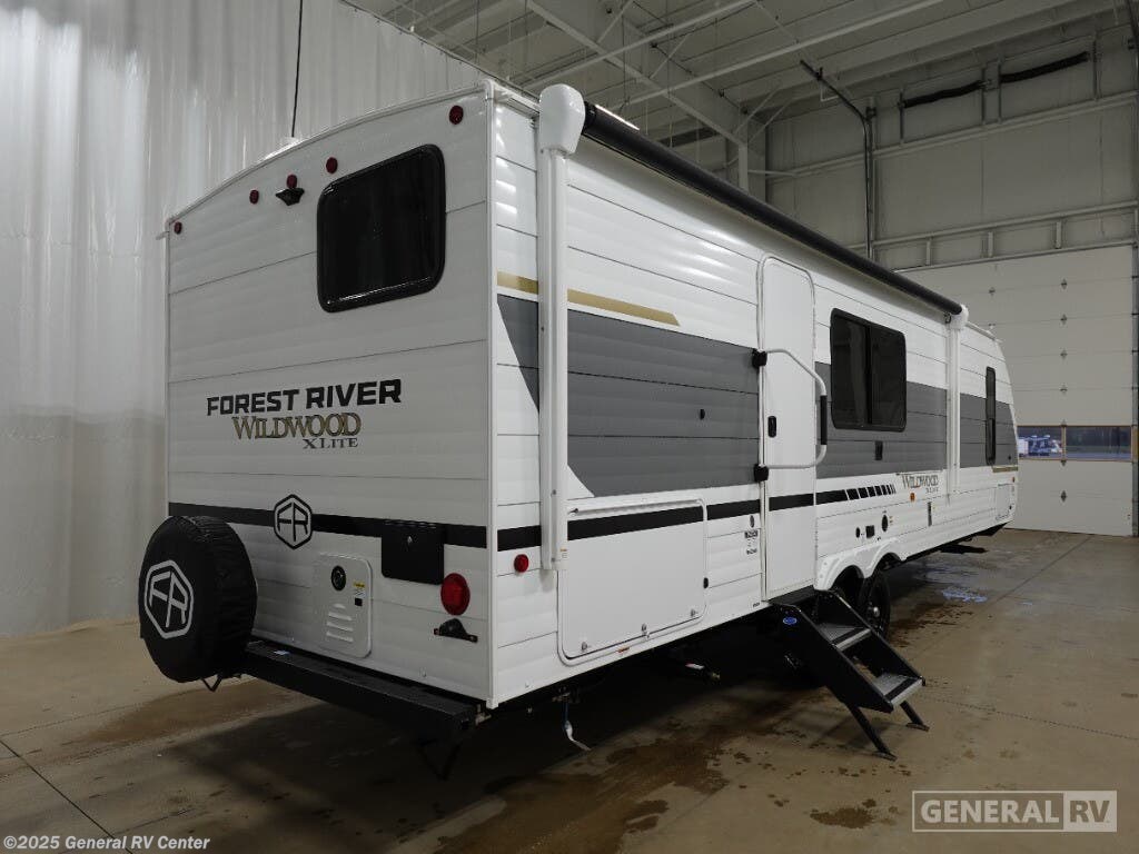 ## Forest River Wildwood X-Lite travel trailer 26ICE highlights - Front Private Bedroom - Large Slide Out - Pull-Out Drawers - 16' Power Awning - Fireplace - Pass-Through Storage You're sure to make camping memories in this spacious travel trailer! You can easily sleep eight people each night thanks to the double-size bunks, the custom king bed with Versa Tilt in the front bedroom plus the Versa-Lounge within the large slide out! The three burner cooktop and microwave oven will let you make meals each day, and you'll appreciate the hidden pantry with shelves behind the fireplace. There is also a booth dinette where you can dine together or play a game of cards after dinner is cleaned up, or you may just find yourselves outdoors under the 16' power awning with LED lights. And don't overlook the full bath, complete with a tub/shower that will make bath time easier if you have little ones. The Forest River Wildwood X-Lite travel trailers are comfortable enough to make any destination feel like home! The Wildwood X-Lite has a Dicor PVC roof membrane, a powder-coated I-beam frame, nitrogen-filled tires, and a cambered chassis as the base for all of its luxurious additions. Within the reliable construction, you will find excellent interior amenities, like the upgraded high-rise spring kitchen faucet, a huge kitchen window, a Bluetooth stereo, and upgraded designer furniture. The Wildwood X-Lite also comes with a pass-through storage compartment for your gear, an upgraded shower head, and a new 60K tankless water heater so you can have hot water when you need it!