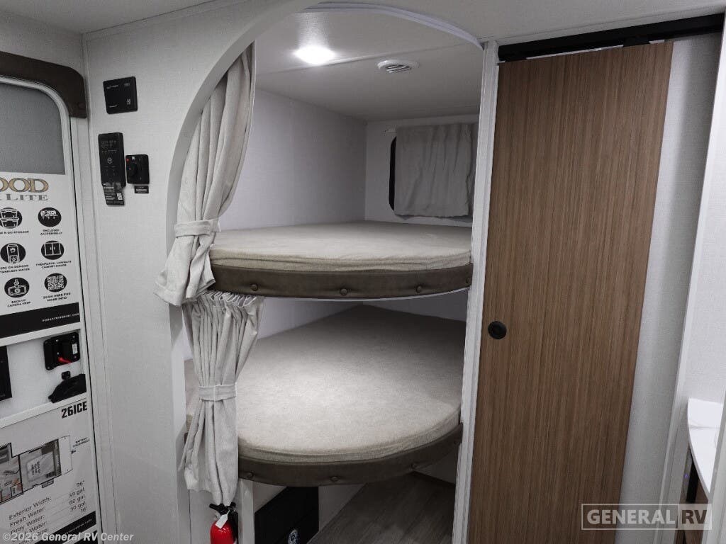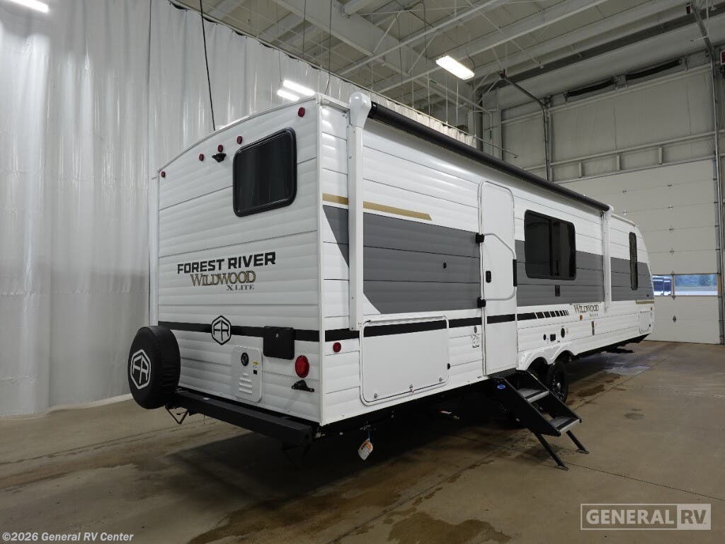 Experience the ultimate in family-friendly travel with the 2026 Forest River Wildwood X-Lite 26ICE. This RV seamlessly blends comfort and functionality, offering ample space for up to ten guests. The front bedroom features a versatile king bed, while the rear provides double-over-double bunks, ensuring everyone has a cozy spot to rest. The center kitchen and living area are designed for both convenience and relaxation, with a full-size electric refrigerator and a three-burner cooktop, making meal prep a breeze. The inviting Versa-Lounge offers a perfect spot to unwind, complete with a charming fireplace to enhance your evenings. The Wildwood X-Lite isn’t just about indoor comfort. Its 16 ft. powered retractable awning creates an ideal outdoor living space, perfect for enjoying nature without sacrificing shade or comfort. The rear bath, complete with a curtain shower, offers practicality and privacy. With a generous cargo capacity and ample storage options, including a hidden pantry and pass-thru storage, this RV ensures you have everything you need for your adventures. Whether you're exploring the open road or setting up camp, this RV is your perfect home away from home. For more details, visit your nearest General RV Dealership Location.