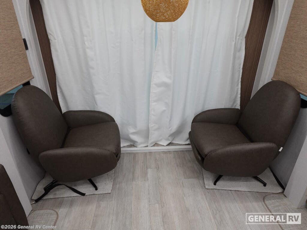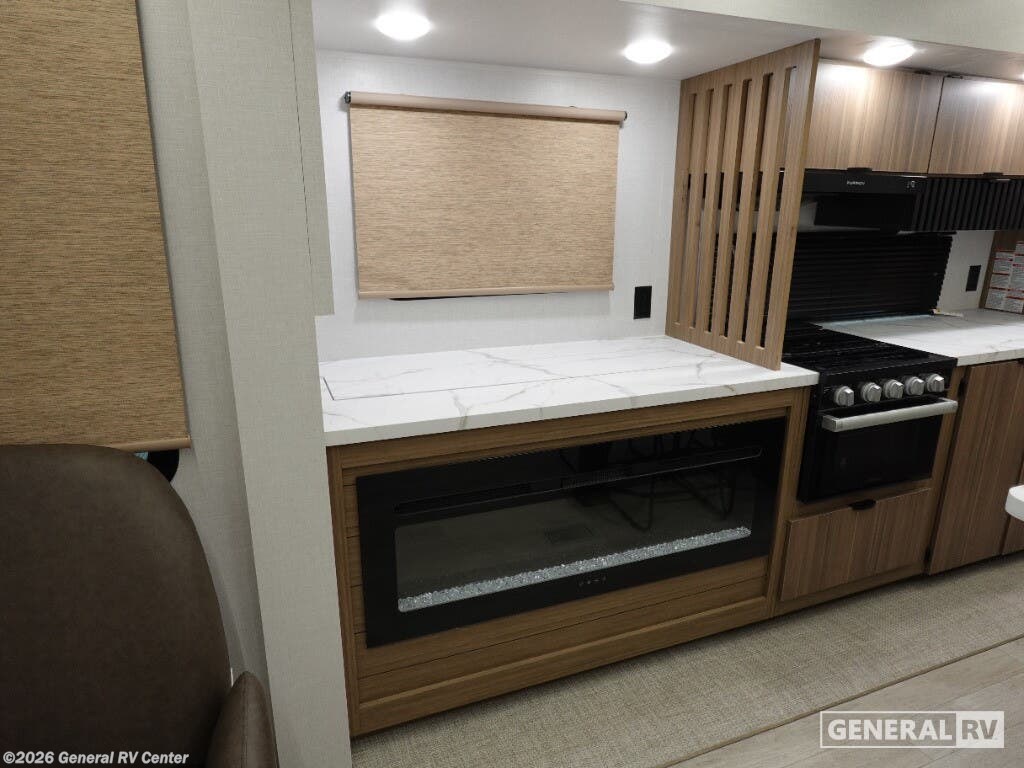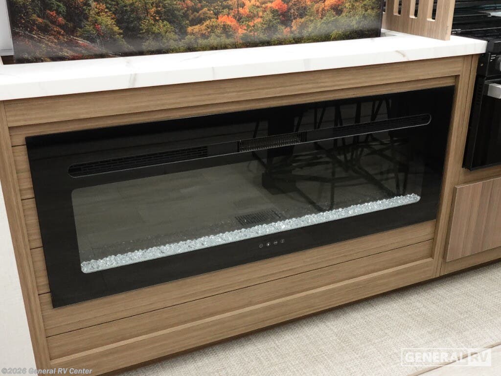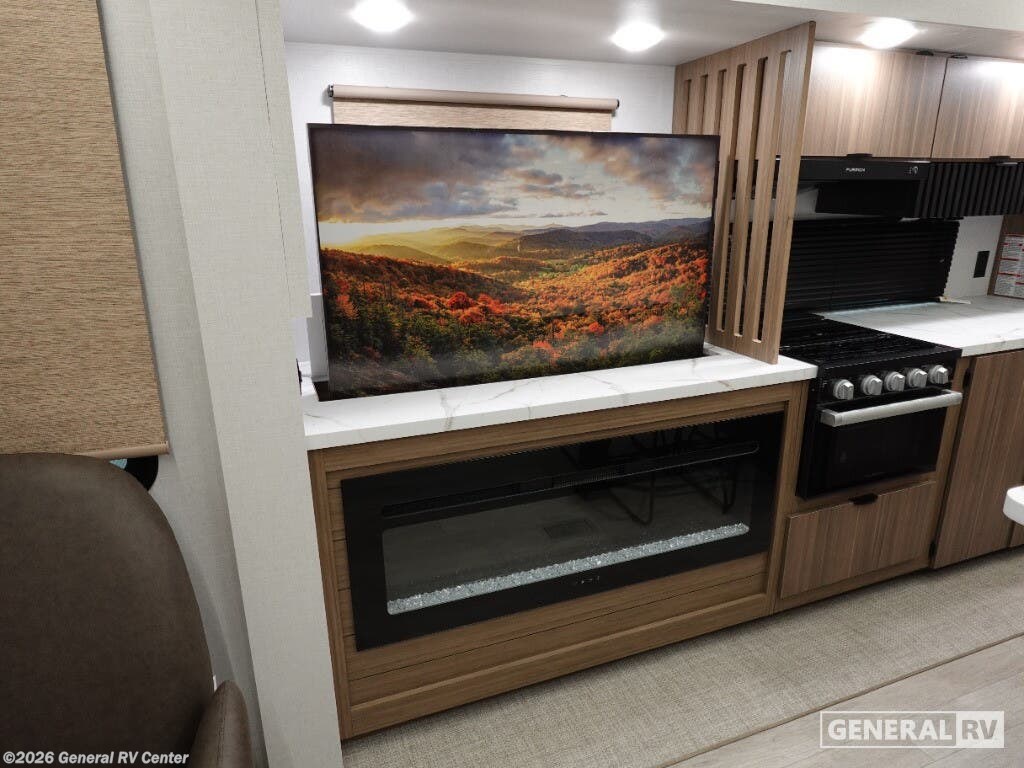 Experience the perfect blend of comfort and style with the 2026 Forest River Wildwood 270ZEN. This thoughtfully designed RV offers a spacious retreat for up to four guests, making it ideal for family adventures or a getaway with friends. As you enter, you'll be greeted by a cozy living area featuring custom recliners and an 80" trundle sofa, all set against a backdrop of a beautiful picture window that invites natural light to fill the space. The centerpiece is a charming fireplace, perfect for those chilly nights, while the clever Tele-Vator ensures your entertainment needs are met without compromising on space. The heart of this RV is its modern kitchen, where a generous countertop and hidden microwave make meal prep a breeze. Moving towards the rear, the luxurious custom king bed with Versa Tilt promises restful nights, surrounded by ample shelving and wardrobe space to keep your belongings neatly organized. The bathroom is conveniently located, offering all the essentials for a refreshing start to your day. With a length of 33 feet and two slides, the 270ZEN provides an expansive interior that feels like a home away from home. For more details and to see this model in person, visit your nearest General RV Dealership.