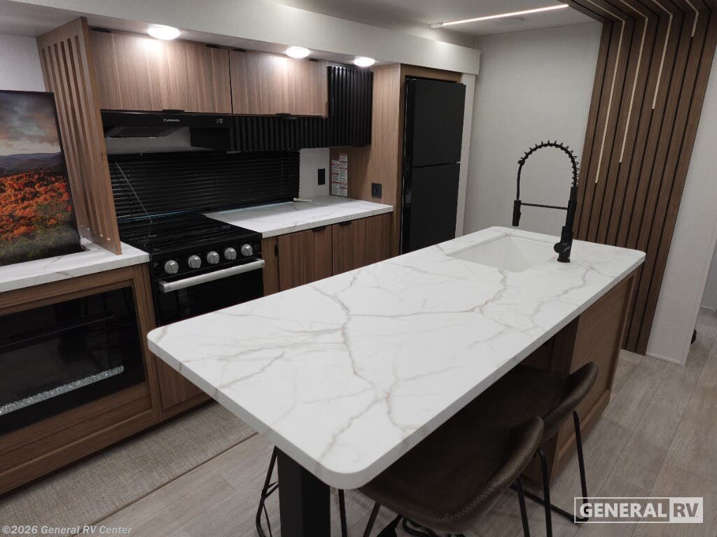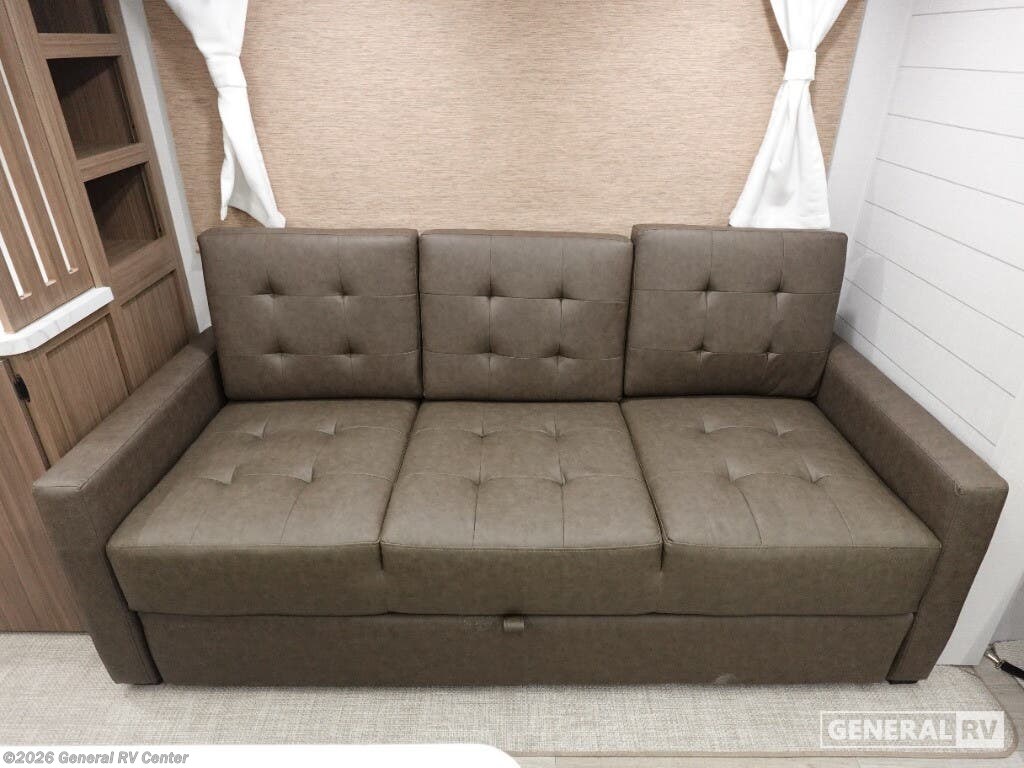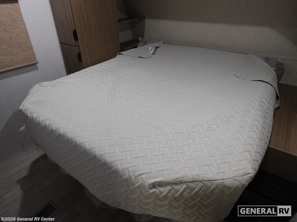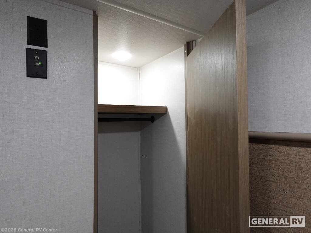 Experience the perfect blend of comfort and style with the 2026 Forest River Wildwood 270ZEN. This thoughtfully designed RV offers a spacious retreat for up to four guests, making it ideal for family adventures or a getaway with friends. As you enter, you'll be greeted by a cozy living area featuring custom recliners and an 80" trundle sofa, all set against a backdrop of a beautiful picture window that invites natural light to fill the space. The centerpiece is a charming fireplace, perfect for those chilly nights, while the clever Tele-Vator ensures your entertainment needs are met without compromising on space. The heart of this RV is its modern kitchen, where a generous countertop and hidden microwave make meal prep a breeze. Moving towards the rear, the luxurious custom king bed with Versa Tilt promises restful nights, surrounded by ample shelving and wardrobe space to keep your belongings neatly organized. The bathroom is conveniently located, offering all the essentials for a refreshing start to your day. With a length of 33 feet and two slides, the 270ZEN provides an expansive interior that feels like a home away from home. For more details and to see this model in person, visit your nearest General RV Dealership.