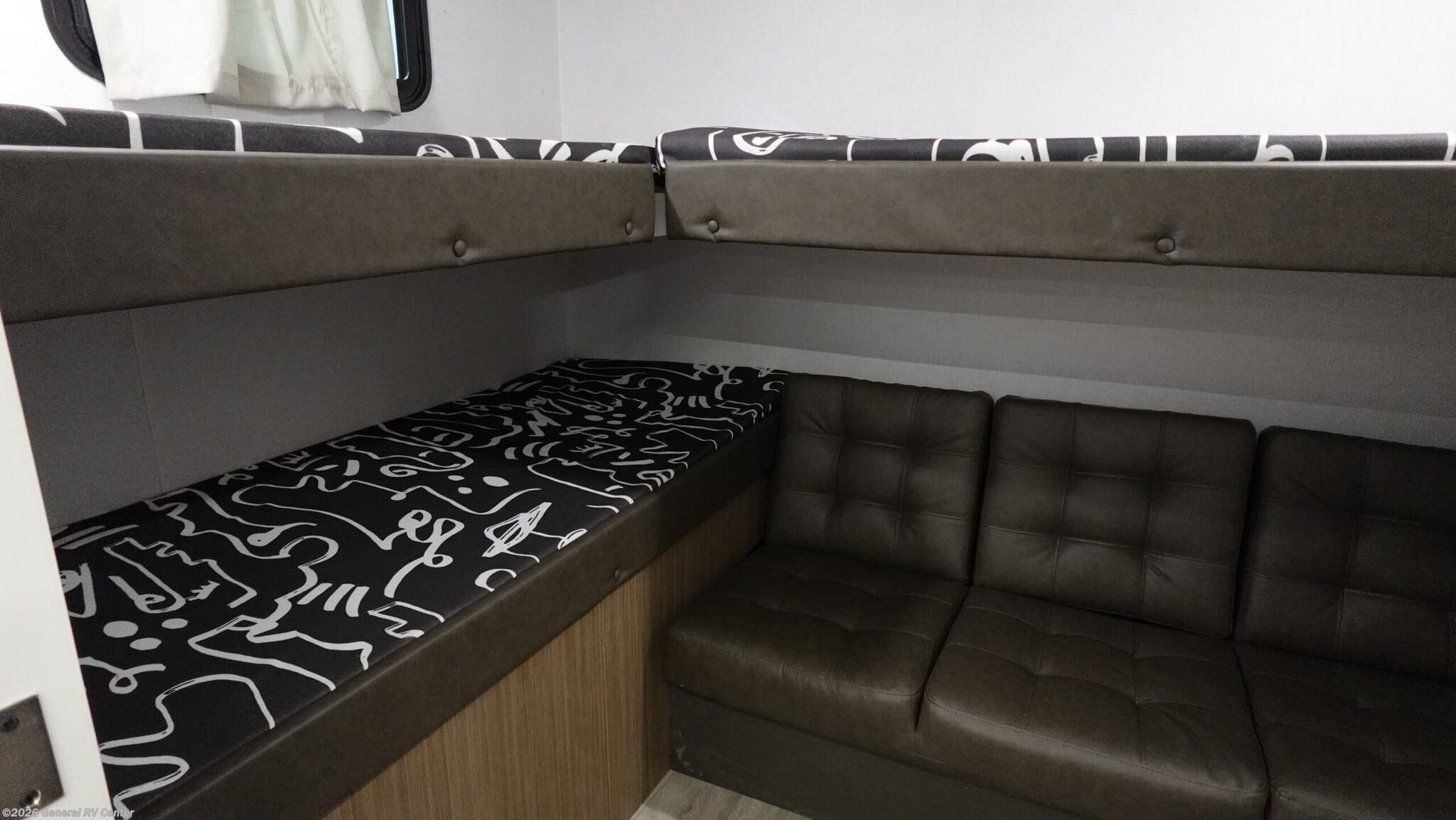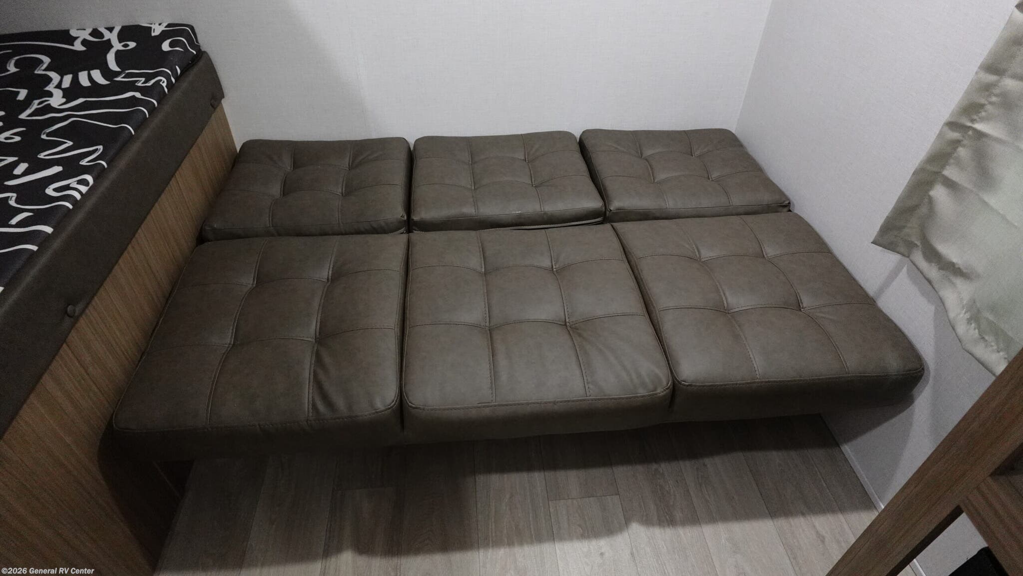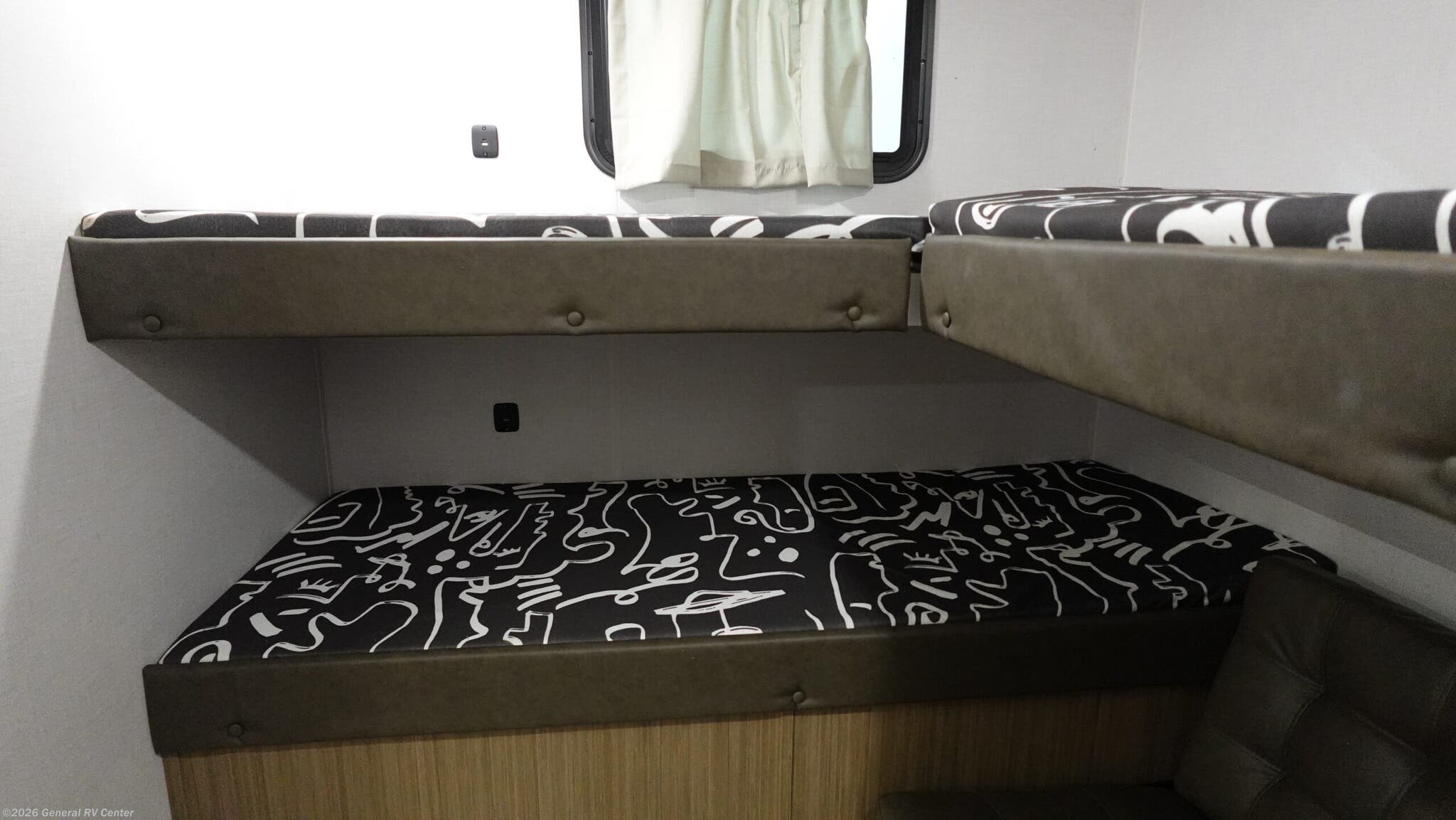 If you like to travel with a large crew, choose this Wildwood X-Lite travel trailer! This trailer has two private sleeping spaces with a private bedroom up front and a private bunkhouse in the back. Not only does the bunkhouse have three bunk beds, but it also has a closet for storage and a jiffy sofa for lounging. In the main living area, there is a large slide that holds the U-shaped dinette and sofa. These pieces of furniture are a part of the Versa Lounge, and you can customize them to function as you need them to. The panoramic windows surround the dinette and sofa so that you can take in the scenic views while you relax. You even have an outdoor camp kitchen to make it more convenient. The Wildwood X-Lite travel trailers are packed with hassle-free camping amenities! The enclosed Accessibelly will help protect against the elements and debris during transport, and the exterior retro/metal redesign is sure to be eye-catching! There are stylish roller shades inside, along with updated backsplash, elegant curtain rods and curtains, plus many more interior comforts! Choose a Wildwood X-Lite travel trailer today for quality and value!