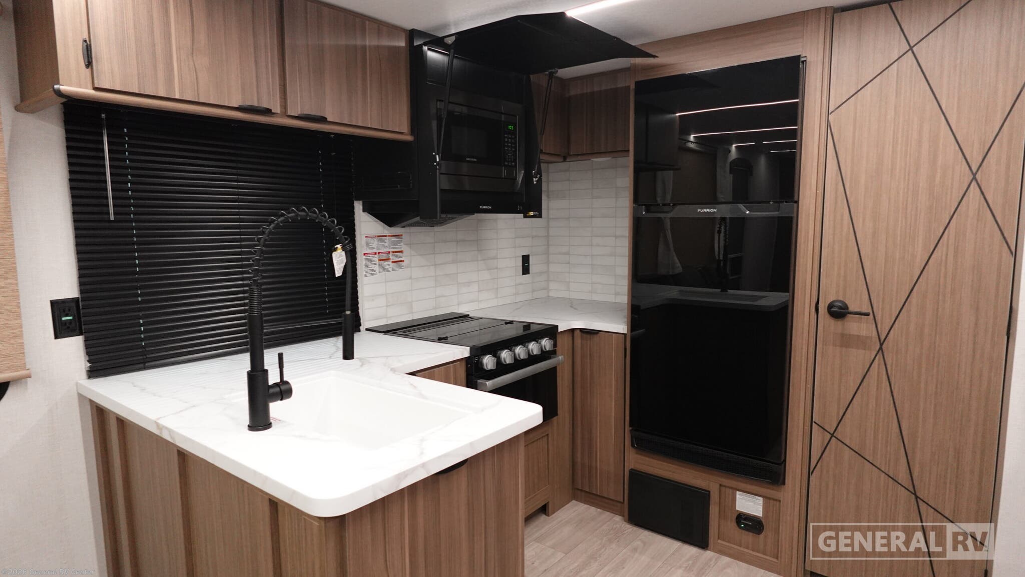 Forest River Wildwood travel trailer 27RK highlights: Rear Kitchen Large Slide Out Front Private Bedroom Versa Lounge Panoramic Windows This Wildwood travel trailer is perfect for your family looking for a new adventure. You will enjoy the rear kitchen that includes a refrigerator and cooktop. The Versa-Lounge will provide comfortable seating and sleeping space, and the Versa Flex table gives you a space to dine and work if needed. This unit also includes two lounge chairs, so you'll feel right at home! You'll love the full bath in this unit, and the custom king bed with Versa-Tilt in the private bedroom is perfect for a good night's rest. The Wildwood travel trailers are packed with hassle-free camping amenities! There are a variety of floorplans to choose from so you can find the layout that best fits your needs. The heated and enclosed Accessibelly will help protect against the elements and debris during transport, and the exterior retro/metal redesign is sure to be eye-catching! There are stylish roller shades inside, along with updated backsplash, elegant curtain rods and curtains, plus many more interior comforts! Choose a Wildwood travel trailer today for quality and value!