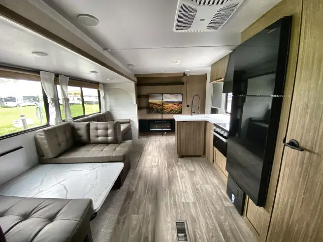 Awning, Leveling Jacks, Power Awning, PVC Roof, Roof Deck, Skylight, Slideout -