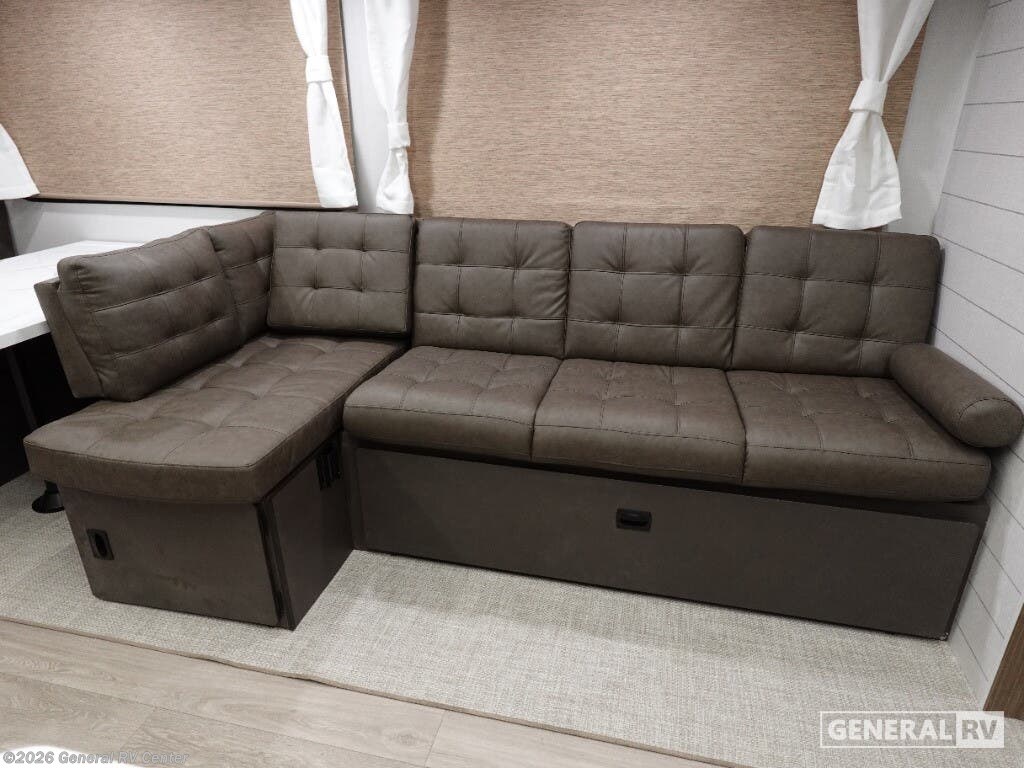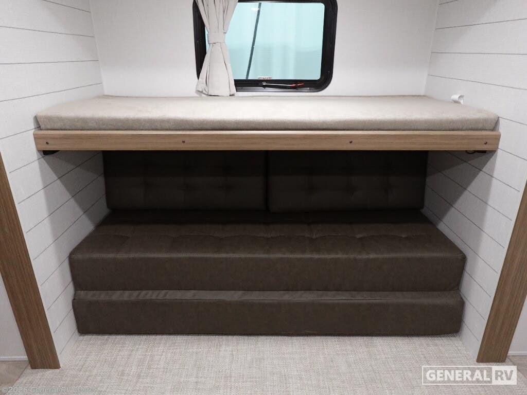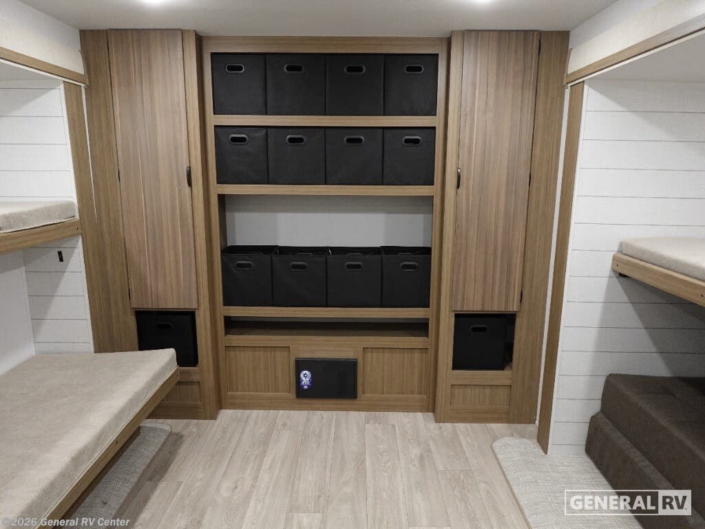 Experience the perfect blend of comfort and adventure with the 2026 Forest River Wildwood 31KQBTS. This spacious RV is designed to accommodate up to 11 sleepers, making it ideal for family getaways or trips with friends. The king-size bed in the front bedroom promises restful nights, while the rear bunkhouse, equipped with three bunks and a versatile queen bed, ensures everyone has their own cozy space. The center kitchen is a culinary enthusiast's dream, featuring a full-size electric refrigerator and a three-burner cooktop. With panoramic windows, the living area invites natural light, creating a warm and inviting atmosphere to unwind. The thoughtful layout includes three slides, enhancing the living space, and an 18-foot powered retractable awning for outdoor relaxation. The center bath, complete with a shower curtain, offers convenience and privacy. The RV's exterior boasts an outside kitchen, perfect for al fresco dining under the stars. With a dry weight of 8,573 lbs and a cargo capacity of 1,292 lbs, this RV is as practical as it is luxurious. Whether you're parked at a campsite or exploring the open road, the Wildwood 31KQBTS is your home away from home. For more details, visit your nearest General RV dealership.