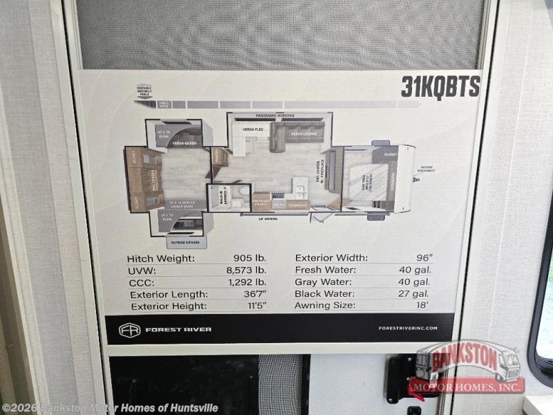 Request More Info on this 2026 Forest River Wildwood 31KQBTS Offered for sale by Bankston Motor Homes of Huntsville