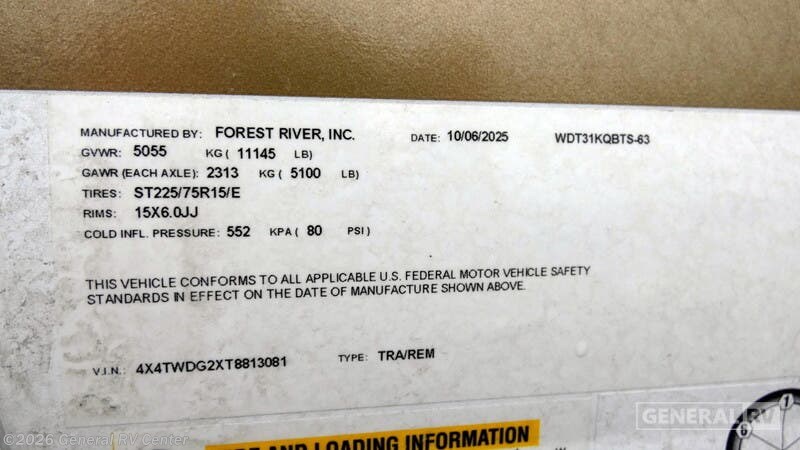 2026 Forest River Wildwood 31KQBTS Specifications
