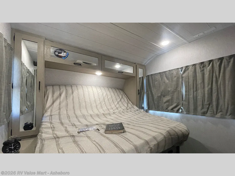 You're going to love this Wildwood travel trailer and its unique layout. The private bunkhouse is up front, and the private bedroom is at the rear of the unit. You will love the walk-through bath that leads into the bedroom, and the custom king bed with Versa Tilt slide out provides more interior space. Enjoy breakfast at the booth dinette, and the Versa Lounge will provide a comfortable place to take an afternoon nap before heading back out to explore. The kids will love the front private bunkhouse with its Versa queen bed and Versa bunk beds. This model also includes an 18' power awning that will shade you during the day and create an outdoor living space you are sure to love.