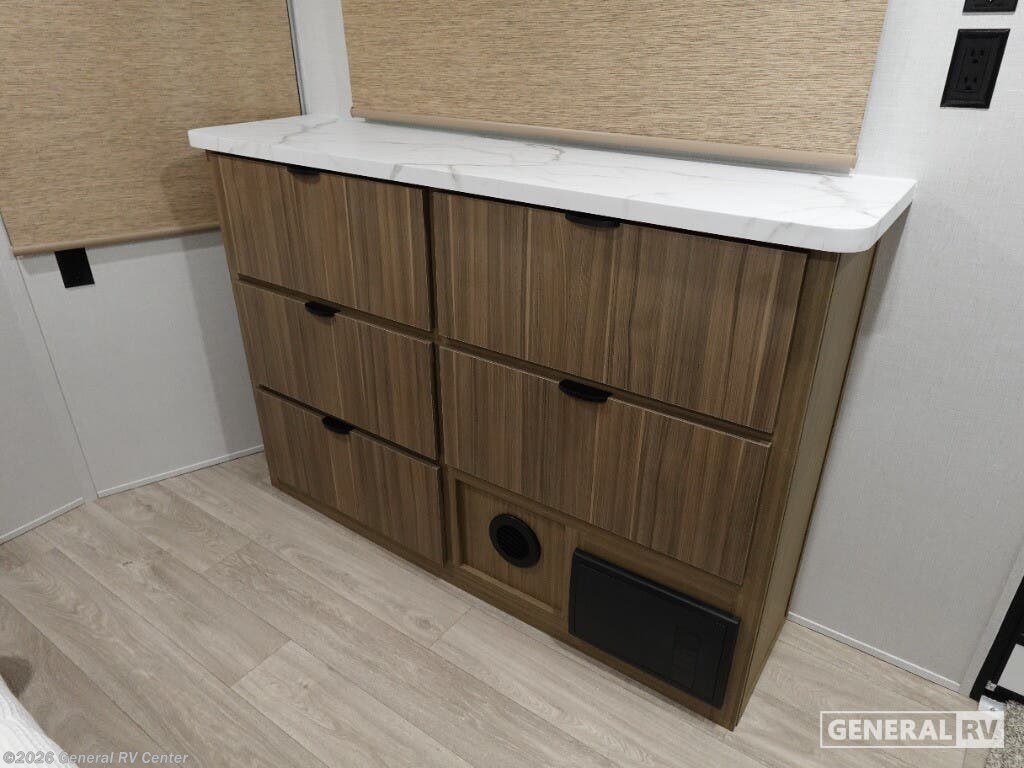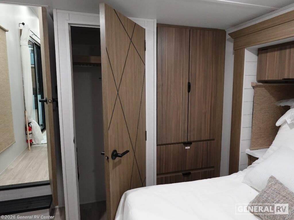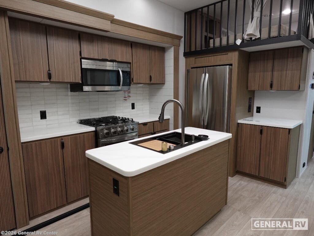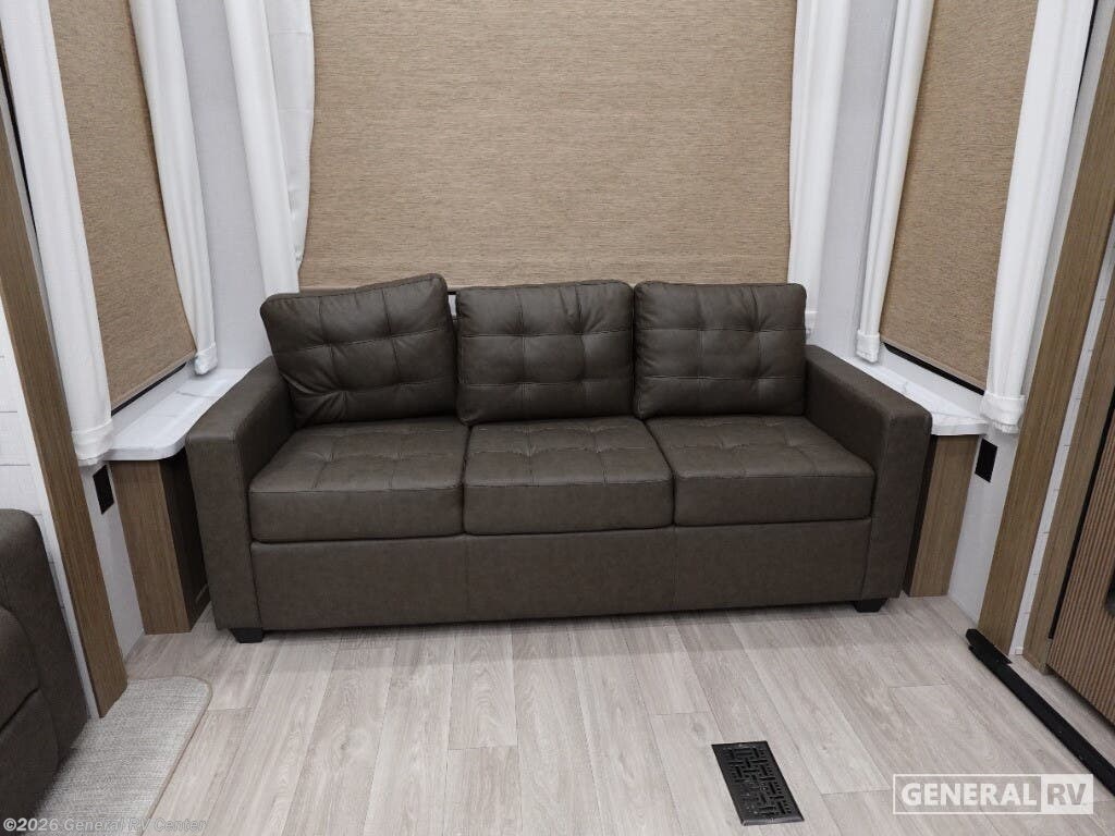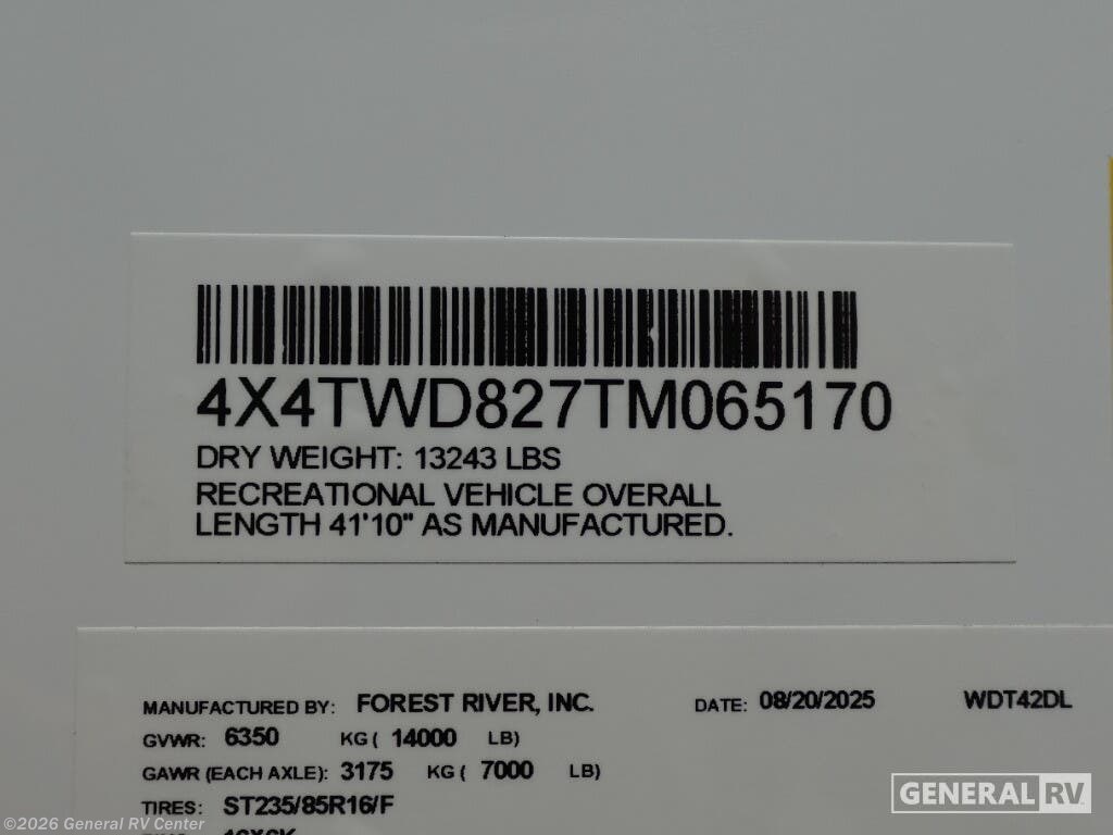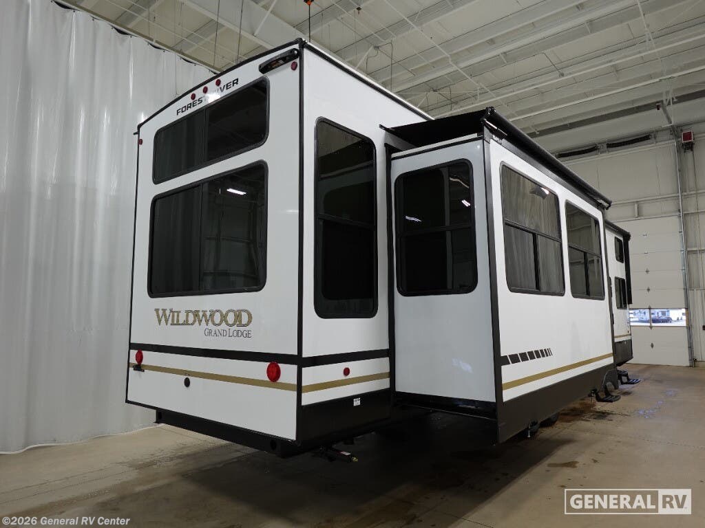 Experience the ultimate in comfort and style with the 2026 Forest River Wildwood Grand Lodge 42DL. This luxurious RV is designed to be your home away from home, offering ample space and modern amenities for up to seven guests. With a stunning open layout, you'll find a center kitchen equipped with a full-size electric refrigerator and a four-burner cooktop, perfect for preparing your favorite meals. The spacious rear living area is enhanced by panoramic windows, allowing you to relax and enjoy breathtaking views from the comfort of plush seating. The Wildwood Grand Lodge 42DL features a versatile sleeping arrangement, including a cozy bed and a unique bunkhouse with three bunks, ideal for families or hosting friends. The master bedroom offers a king bed with a Versa Tilt feature for added comfort. A walk-in shower and washer/dryer prep add to the convenience, ensuring you have everything you need for extended adventures. Outside, the 20 ft. powered retractable awning provides a perfect space for outdoor relaxation, whether you're soaking up the sun or enjoying a meal al fresco. With its elegant design and thoughtful features, this RV is ready to elevate your travel experience. For more details or to see it in person, visit your nearest General RV dealership.