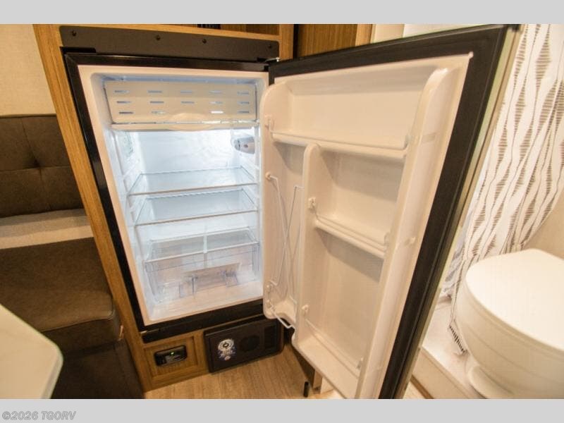 This lightweight travel trailer has everything you need to enjoy camping trips! There is a front east to west custom king bed with storage at the foot of the bed and overhead for your valuables. A private bath includes a toilet and walk-in shower so you can easily get ready each day, and you can prepare your meals on the two-burner cooktop when you get hungry. The booth dinette will provide dining space, along with sleeping space for one to two little ones. Don't let this trailer get away!