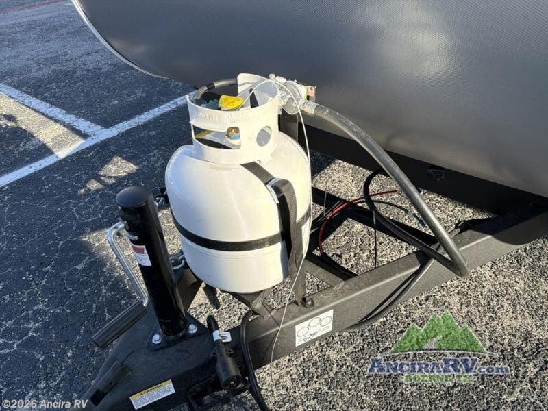 This lightweight travel trailer has everything you need to enjoy camping trips! There is a front east to west custom king bed with storage at the foot of the bed and overhead for your valuables. A private bath includes a toilet and walk-in shower so you can easily get ready each day, and you can prepare your meals on the two-burner cooktop when you get hungry. The booth dinette will provide dining space, along with sleeping space for one to two little ones. Don't let this trailer get away!