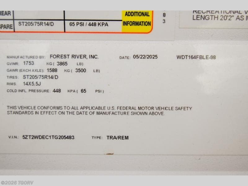 Request More Info on this 2026 Forest River Wildwood FSX 164FBLE Offered for sale by TGORV