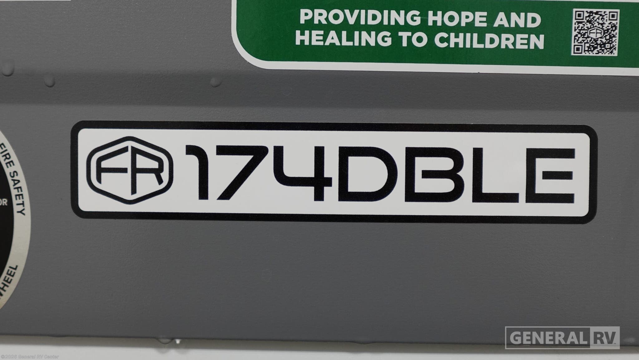 Forest River Wildwood FSX Limited Edition Value travel trailer 174DBLE highlights: Queen Bed Oversized Door for Storage Full Bath Carpet Free The double-size bunks with storage will be a big selling point in this travel trailer! While your guests take the bunks, you can have the front queen bed all to yourselves, and there is a wardrobe to keep your things organized. A two-burner cooktop and microwave will let you make meals each day, and you can dine at the open lounge with a table. The Forest River Wildwood FSX Limited Edition travel trailer is easy to tow and easy to love, so come take a look! You'll appreciate the aerodynamic front profile, diamond plate front rock guard, and seamless holding tanks. The 26" entry doors are easy to access. Nitrogen filled tires offer a smooth ride, but there's a full-size spare tire if you happen to need it. A dedicated cable TV hookup is located on the exterior, so you can settle in under the power awning and watch some TV.