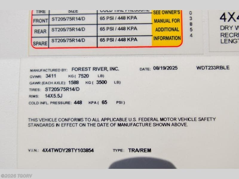 Request More Info on this 2026 Forest River Wildwood FSX 233RBLE Offered for sale by TGORV