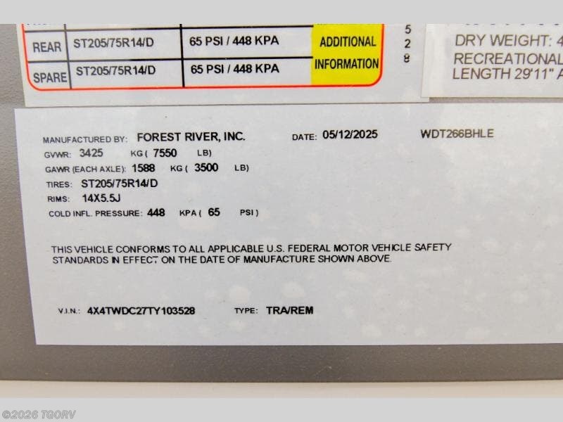 Request More Info on this 2026 Forest River Wildwood FSX 266BHLE Offered for sale by TGORV