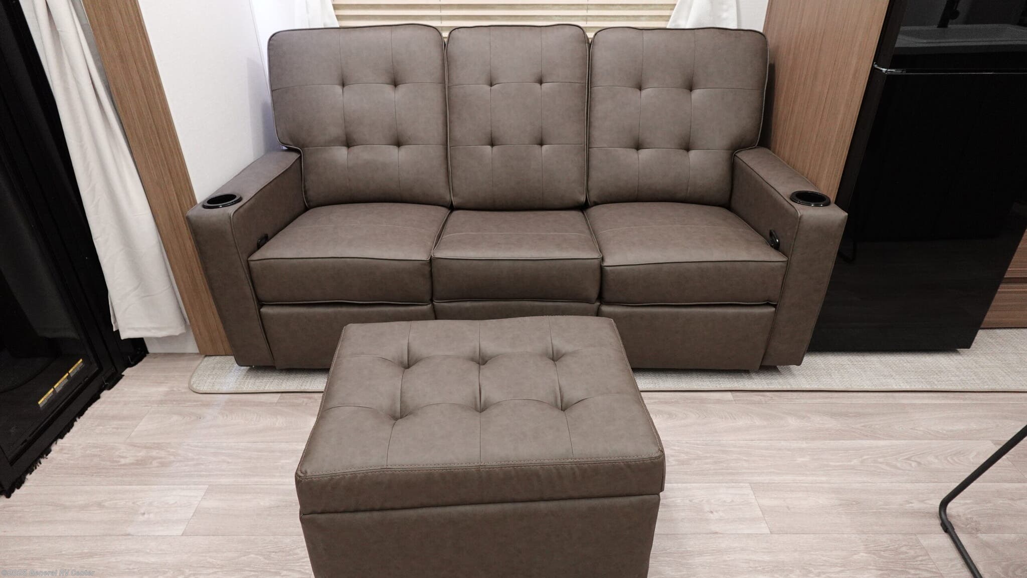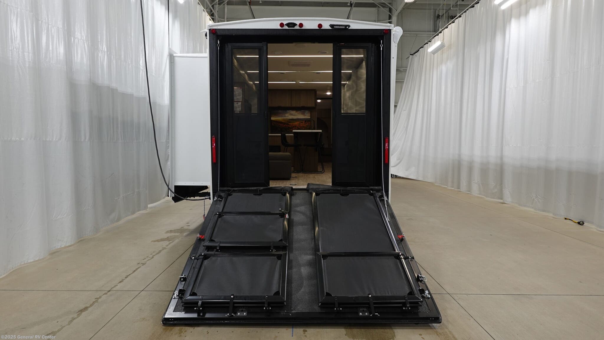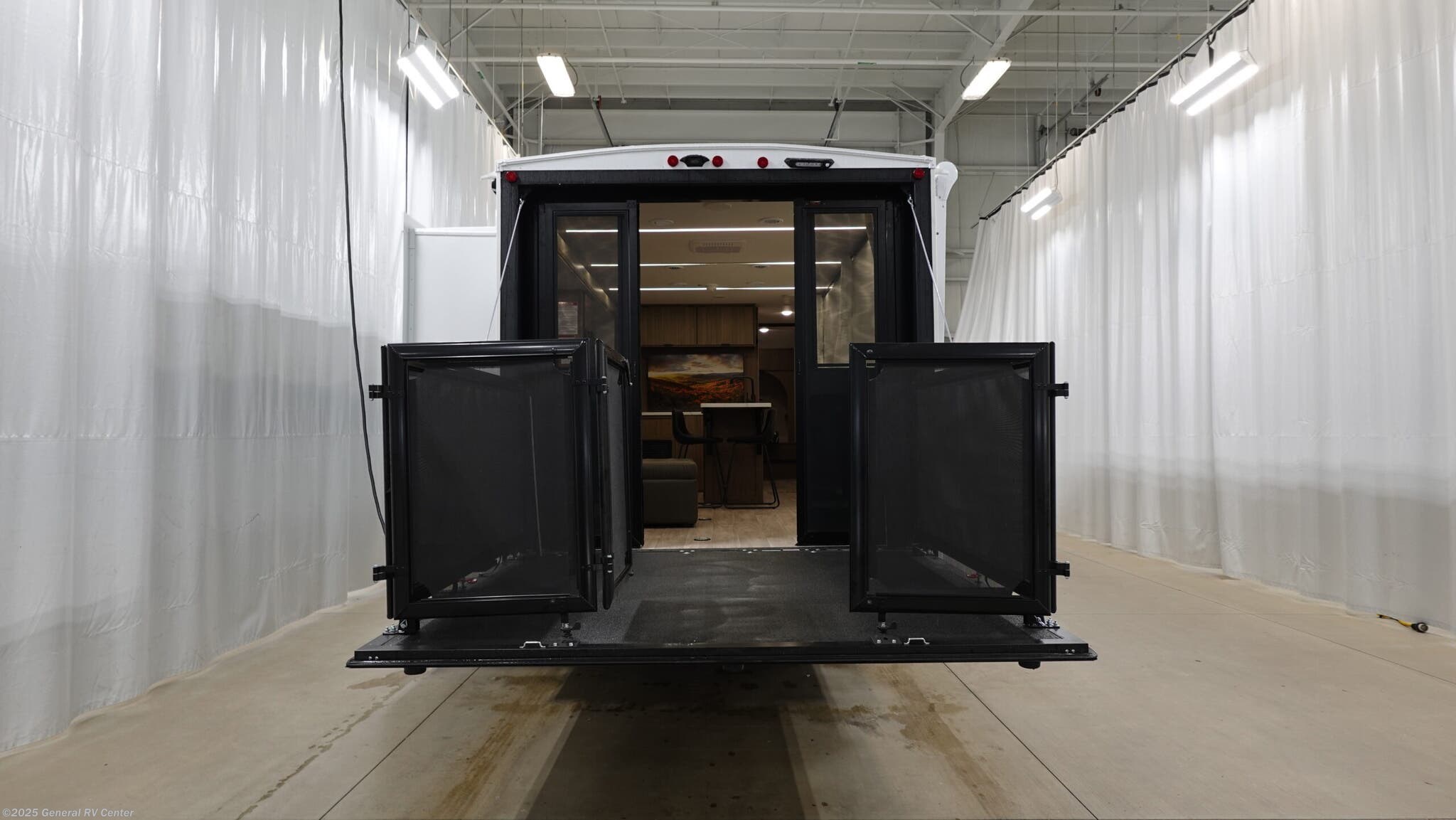 **Forest River Wildwood FSX Platinum versatile cargo trailer 28VCX highlights: ** * Large Island Peninsula * Front Private Bedroom * Full Pass-Thru Storage * 3,000 Lb. Capacity Ramp Door * Fiberglass Exterior It will be so easy to enjoy camping trips in this spacious trailer for two! There is a ramp door with a 15,000 lb. capacity patio where you can relax with campground neighbors. The main living area is made cozy thanks to the chaise lounge and theater seating directly across from the TV prep and movie projector with premium sound. This space also includes tie-downs if you have some smaller toys to haul. The chef of your group will love the large island peninsula for more prep space plus the entire unit is carpet free for easy cleaning. And don't overlook the front private bedroom with a king bed plus a full bath close by to freshen up! The Forest River Wildwood FSX travel trailers and toy hauler travel trailers are ultra comfortable and lightweight, perfect for first time or seasoned campers alike! You will love how easy it will be to relax with residential features that will make your space feel just like home, and the durable construction means you can enjoy your RV for years to come. There are a wide variety of floorplans to choose from, including couple's trailers, bunk models, and toy haulers, all with full bath and kitchen amenities and plenty of storage for all your gear!