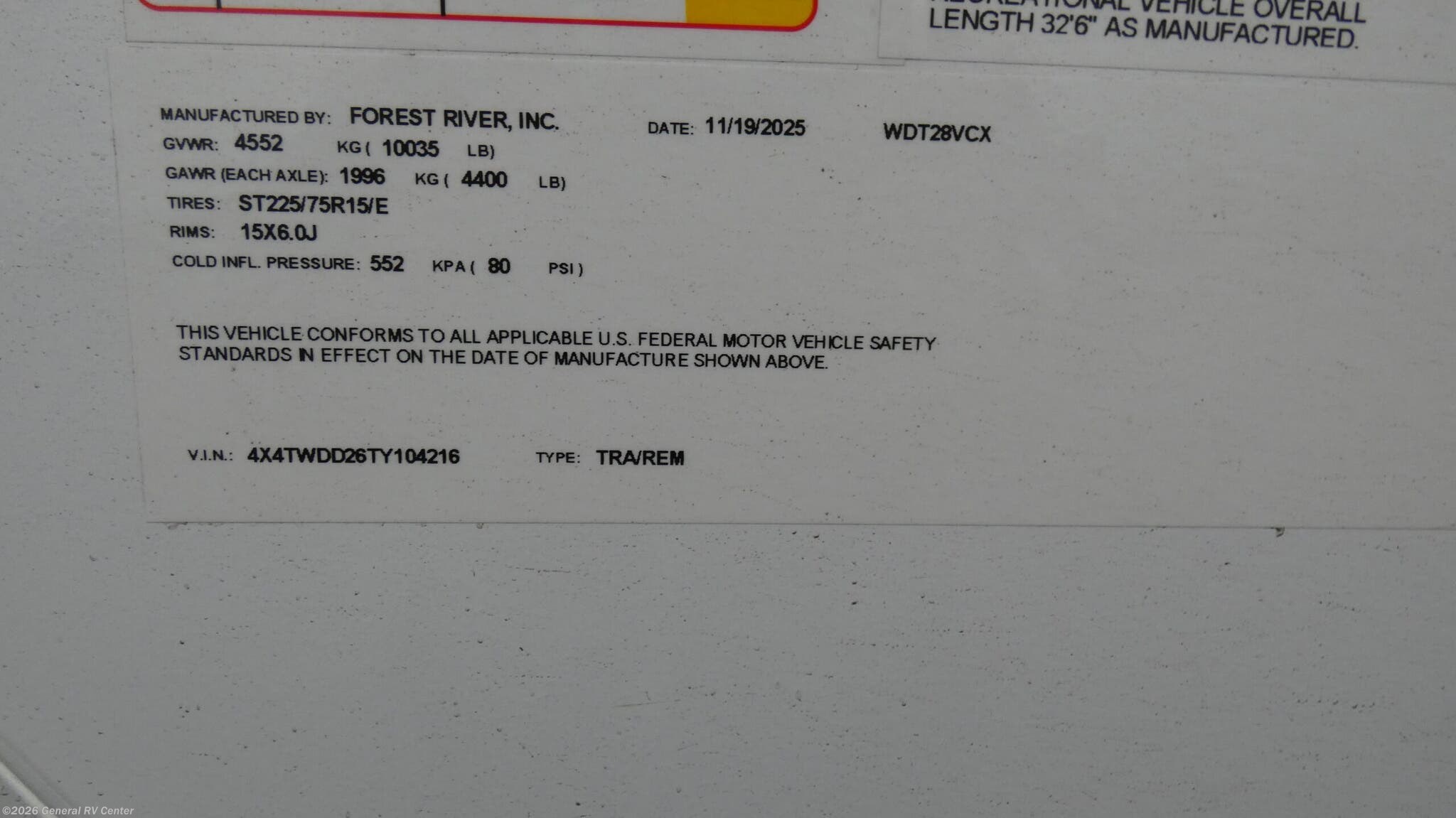 - VIN4X4TWDD26TY104216