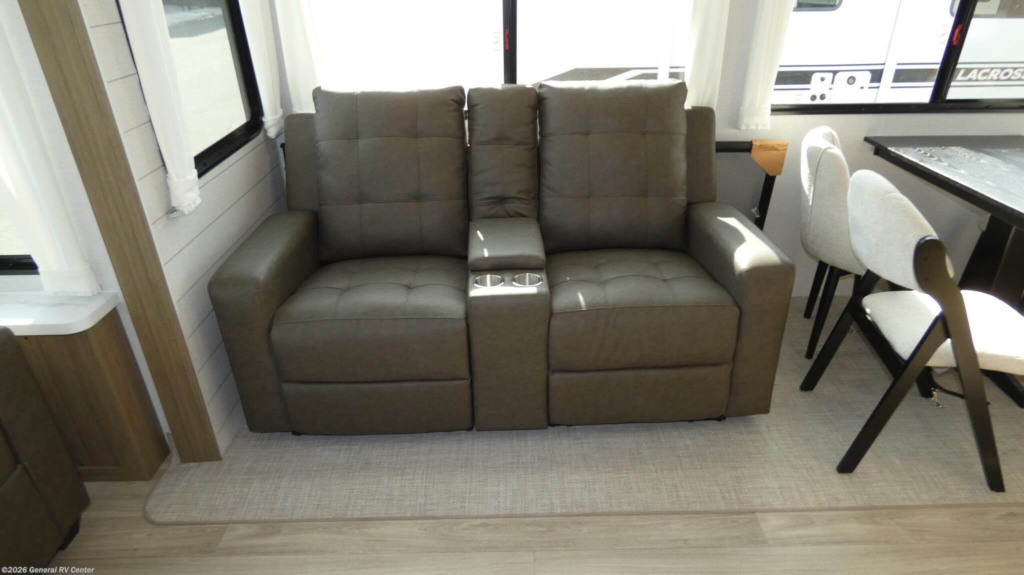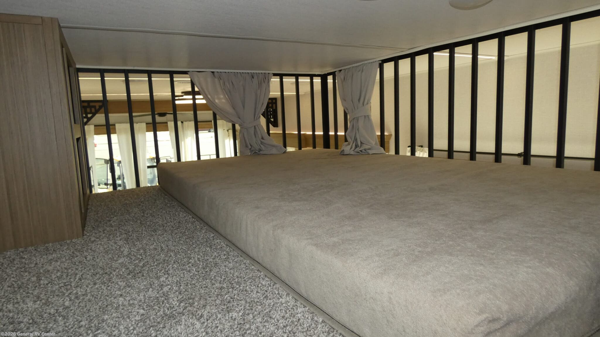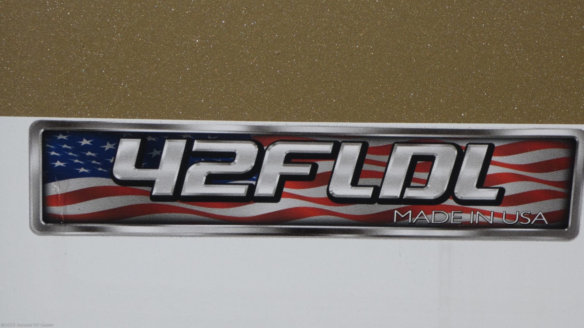 Forest River Wildwood Grand Lodge destination trailer 42FLDL highlights: Dual Entry Front Living Room Kitchen Island Central Vacuum Residential Theater Seating Double Loft Keep your family happy by providing them with plenty of space and comforts in this Wildwood Grand Lodge destination trailer! The living area is such a gorgeous feature in this unit because of the panoramic front windows that allow you to feel as if you're right in the heart of your surroundings, and as you sit on the sofa next to the fireplace, you'll appreciate the ambiance it brings to this space. If you've decided to stay up late outside underneath the 21' awning, you can rest assured that you'll be able to get back inside quietly without waking anyone up because the second entry door leads directly into the rear private bedroom for your convenience so you can quickly fall asleep on your own king bed with versa-tilt. And the kids will love the double loft with three bunk mats and extra floor space to play. With any Wildwood Grand Lodge destination trailer by Forest River, you can enjoy extended stays wherever you go! There is 4K awning blade lighting outside, along with slide out awning toppers, plus a heated and enclosed Accessibelly for added protection. Inside, you'll love the stylish backsplash update, elegant curtain rods and curtains, TFL black walnut entertainment shelves, and stainless steel kitchen appliances. A Serta mattress in the bedroom(s) will provide comfort to each journey, and there is a tankless water heater for hot water when you need it.
